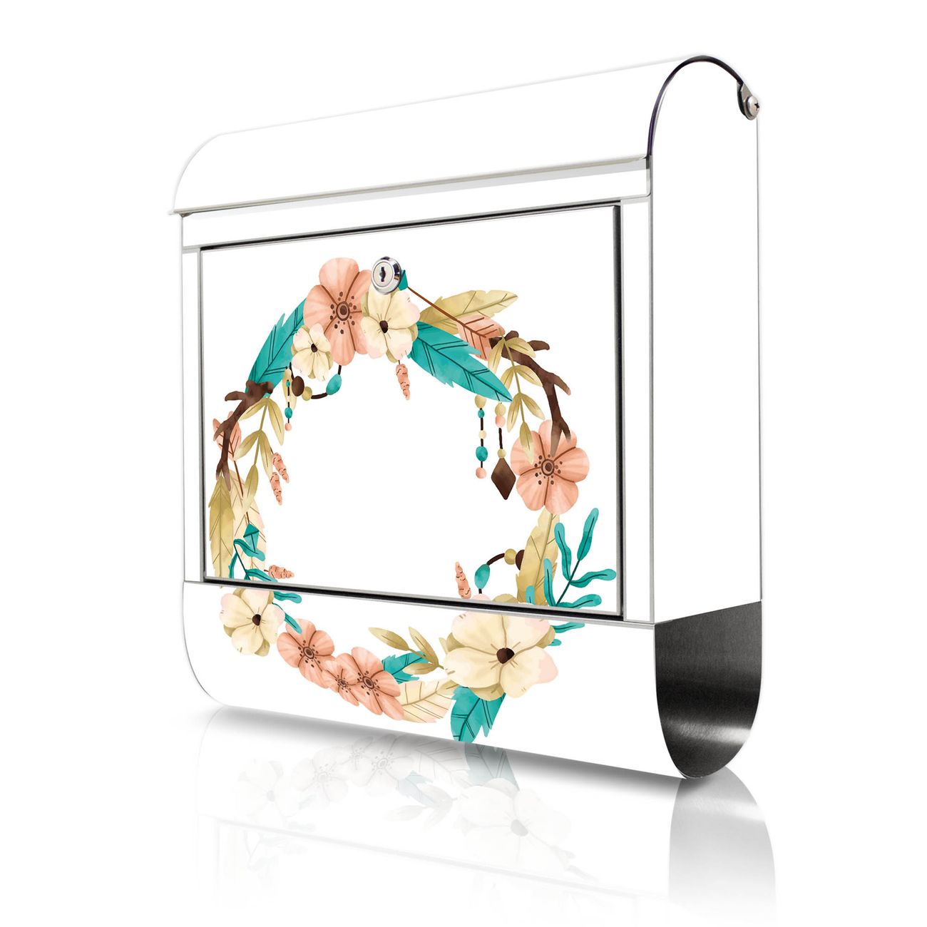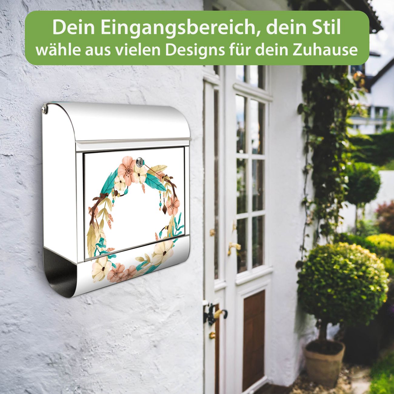 Wandbriefkasten Edelstahl Motiv Frühlingsblütenkranz