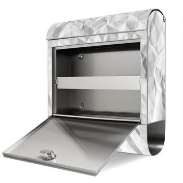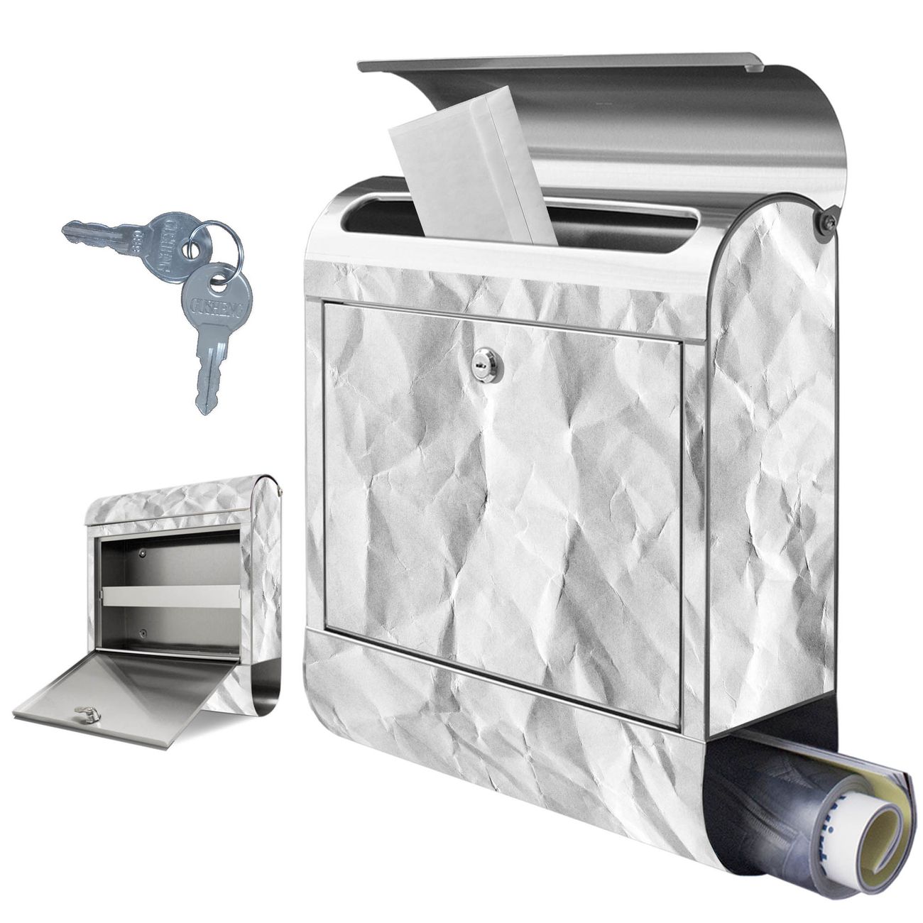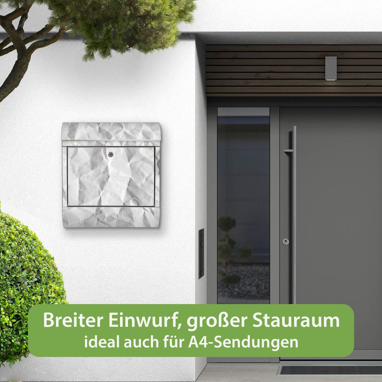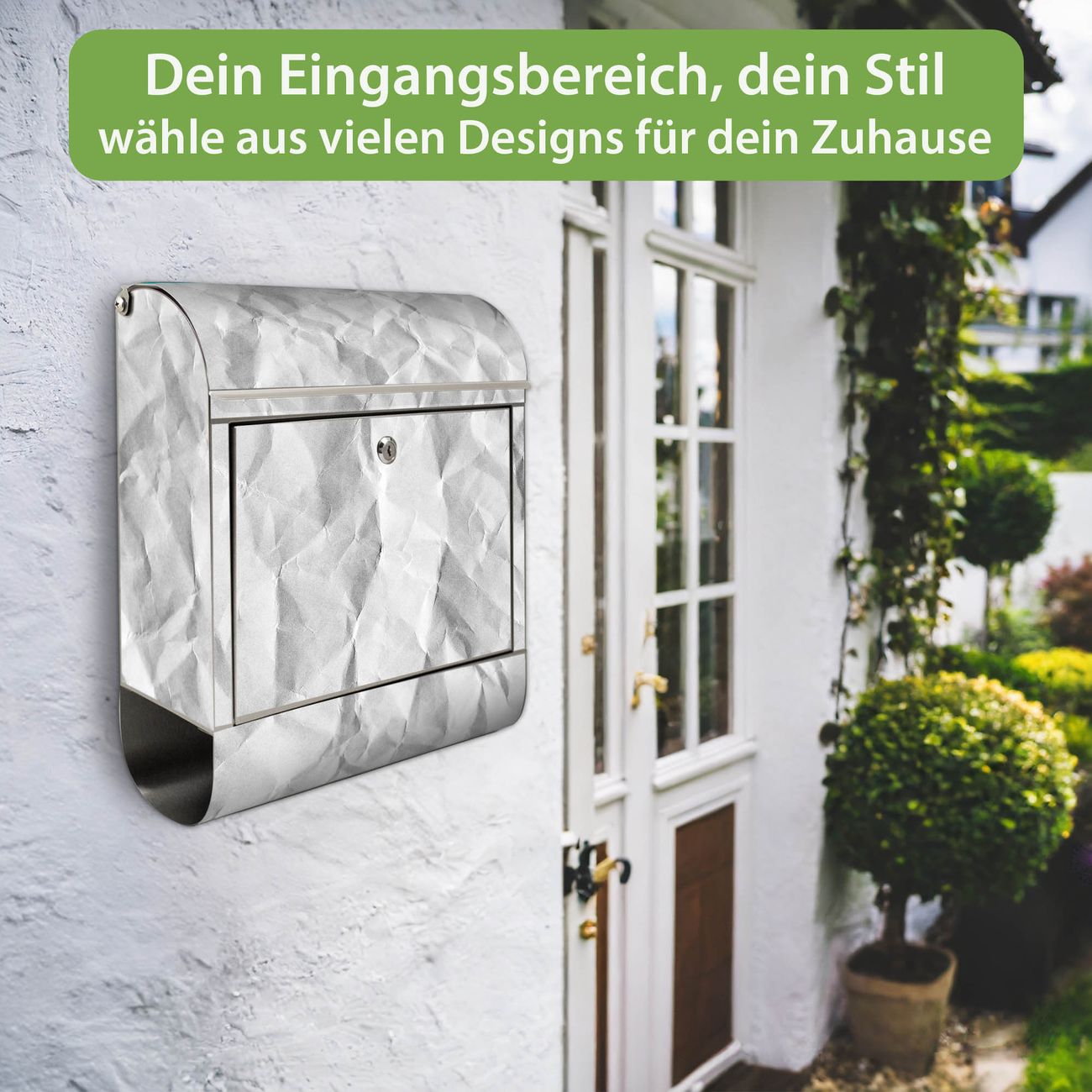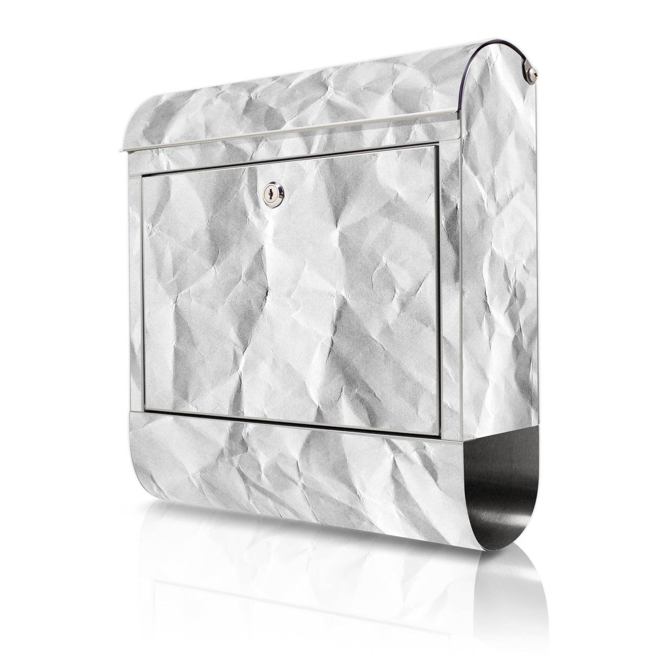 Wandbriefkasten Edelstahl Motiv Geknittertes Papier Grau