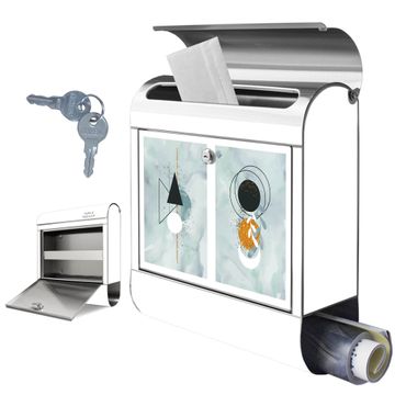 FUNKTION: Der banjado Edelstahl Briefkasten mit Motiv Motiv Geometrische Komposition bietet Ihnen mit seinem Fassungsvermögen genügend Platz auch für große A4 Sendungen. Das integrierte Zeitungsfach eignet sich hervorragend um unkompliziert die Tageszeitung zu fassen. Auf Wunsch können Sie bei uns den passenden Ständer kaufen und so aus dem Wandbriefkasten einen Standbriefkasten machen. DESIGN: Der Motivbriefkasten hat ein sehr ansprechendes und ausgefallenes Design, damit entlocken Sie Ihren Nachbarn und dem Postboten ein Lächeln. Heben Sie Sich ab von der tristen grauen Masse ohne auf Funktionalität zu verzichten. DETAILS: Der Design Briefkasten mit Motiv Motiv Geometrische Komposition besteht aus hochwertigem 18/0 Edelstahl. Das Motiv besteht aus einer wetter- und UV-resistenten Folie, die mit einem Schutzlaminat überzogen ist. Der Briefkasten wird mit Montagematerial und zwei Schlüsseln geliefert. NUTZEN: Sie können diesen Briefkasten sowohl als Wandbriefkasten montieren oder einen passenden Ständer auswählen und als Standbriefkasten einbetonieren. Die Größe bietet genügend Platz für Sendungen aller Art, das hochwertige Edelstahl ist rostfrei und die Motivfolie absolut wetterfest. SCHUTZ: Um Ihre Post optimal vor Witterungseinflüssen wie Starkregen zu schützen, empfehlen wir, den Briefkasten geschützt anzubringen. BANJADO: Ihr Briefkasten wird in Sachsen in einer kleinen Manufaktur von Hand veredelt. Die Motivfolie ist lösungsmittelfrei und schutzlaminiert, dies sorgt für einen langen Halt. Wir legen großen Wert auf die Verbindung von Funktionalität und Design. Sie erhalten Handarbeit aus Sachsen.