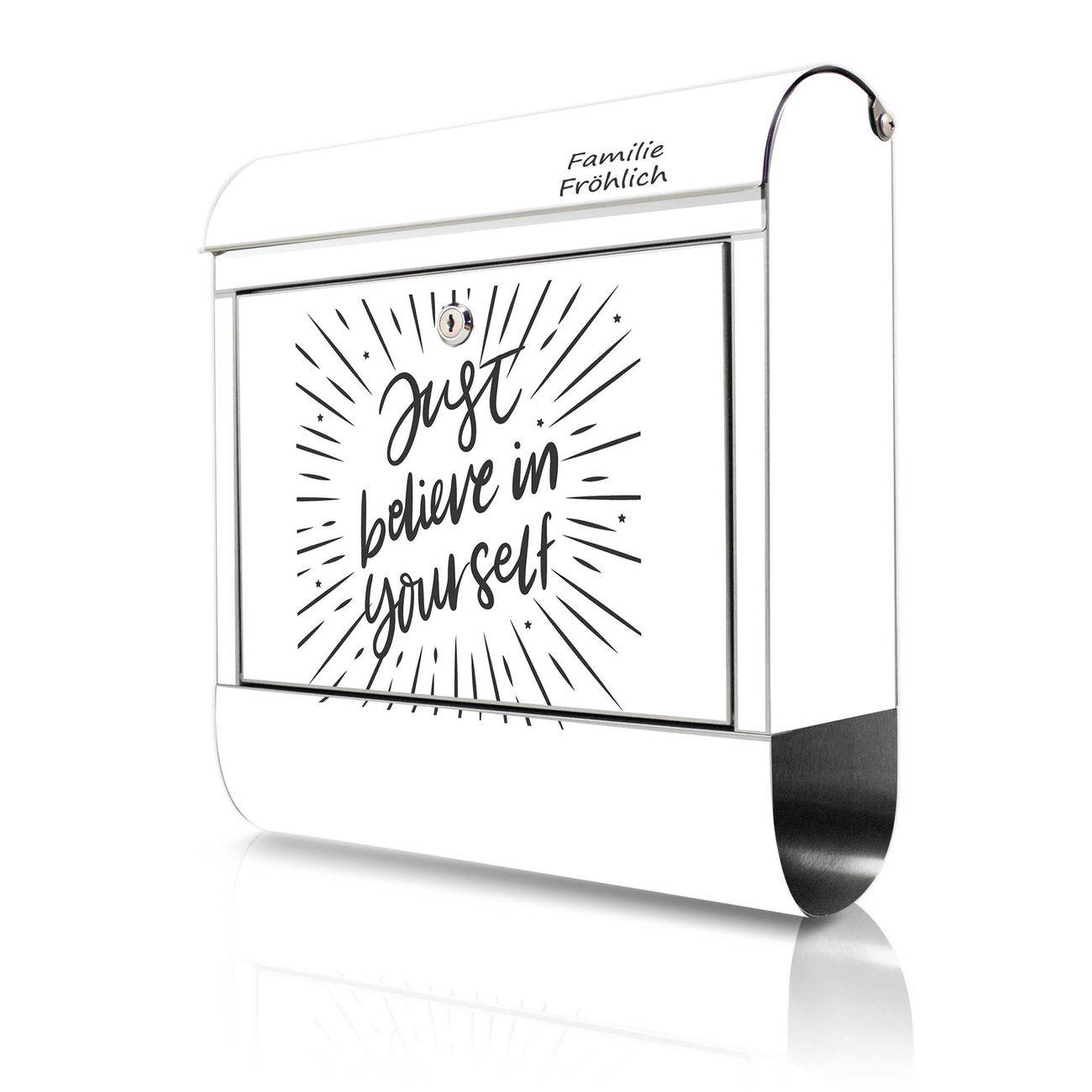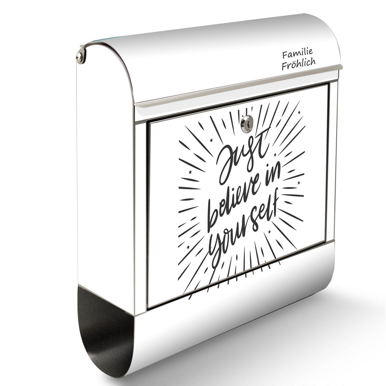Wandbriefkasten Edelstahl Motiv Glaube an dich