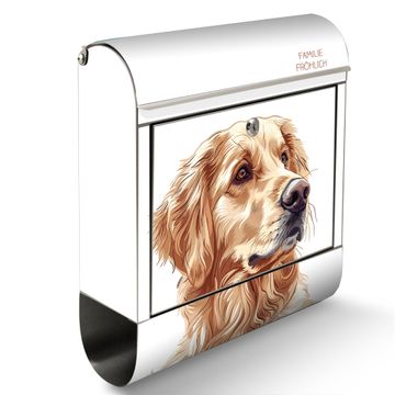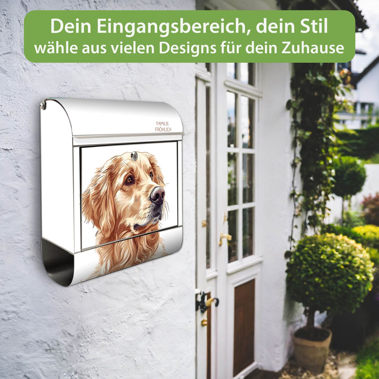 Wandbriefkasten Edelstahl Motiv Golden Retriever