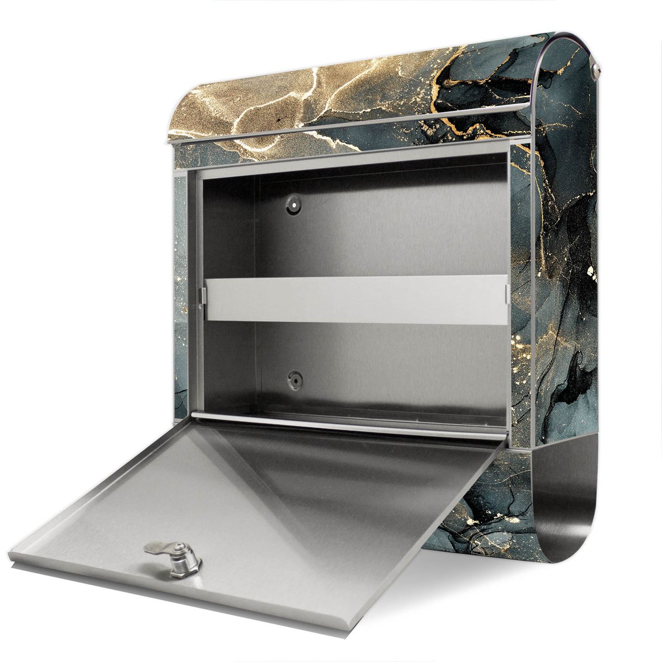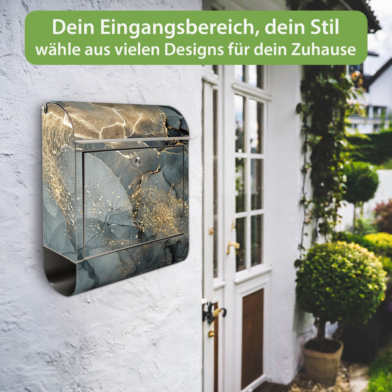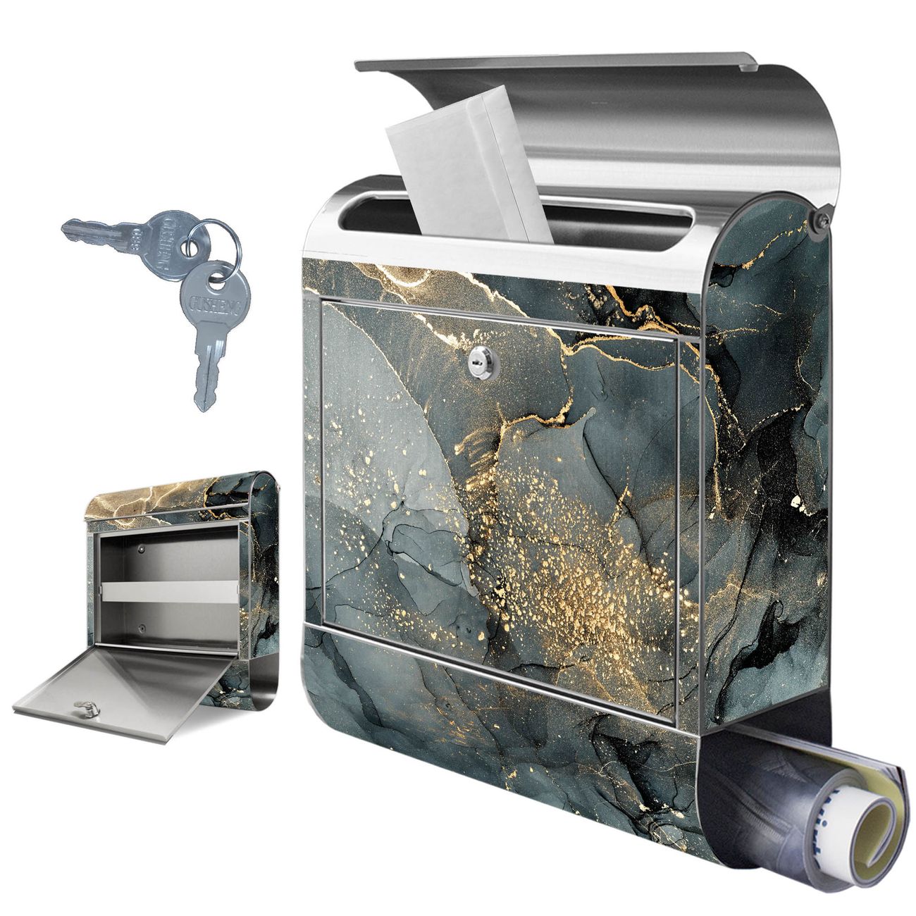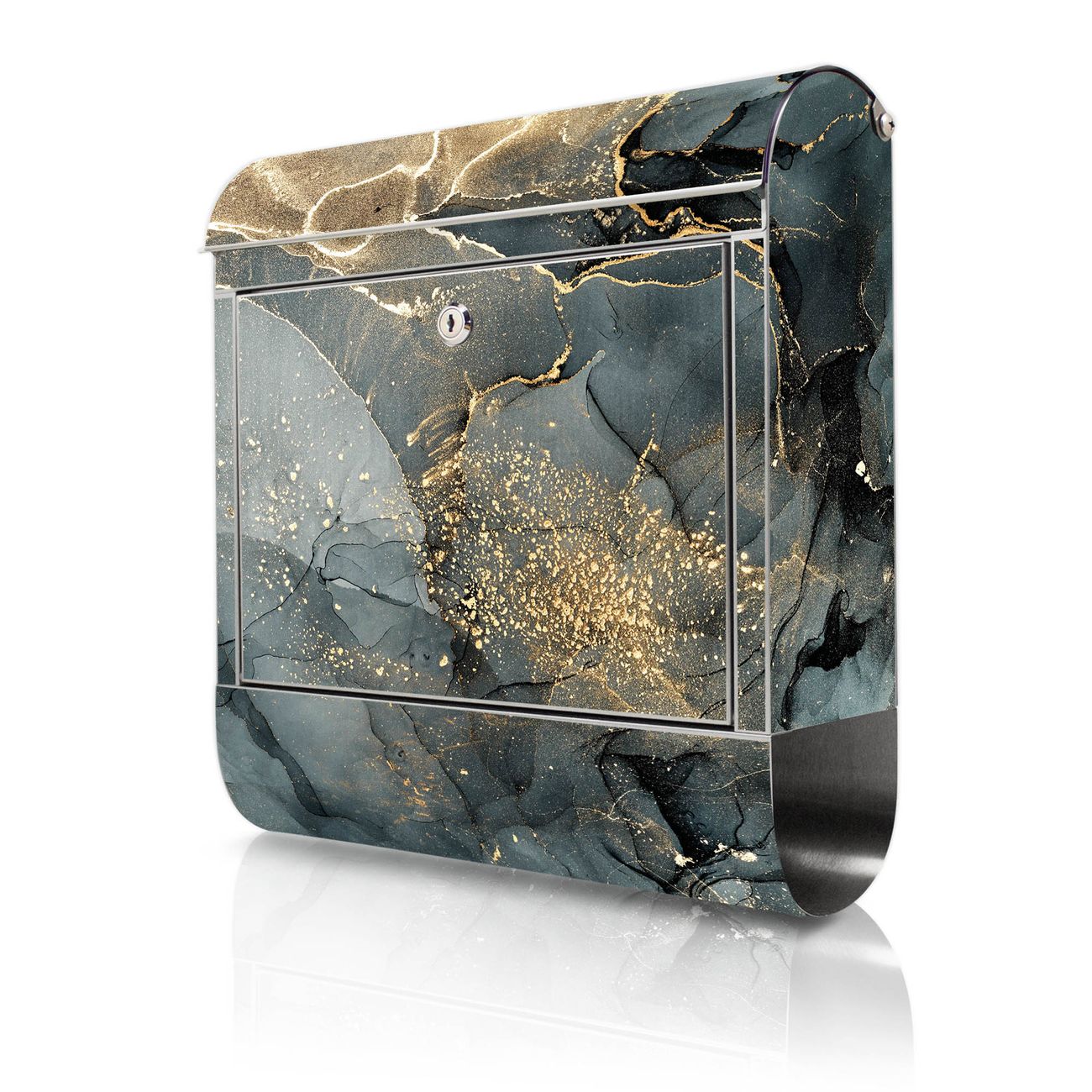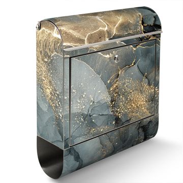 Wandbriefkasten Edelstahl Motiv grauer Marmor mit Gold 1