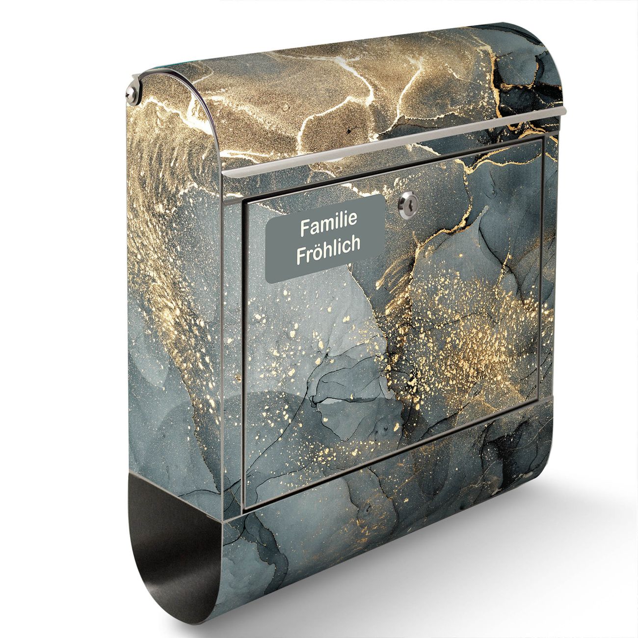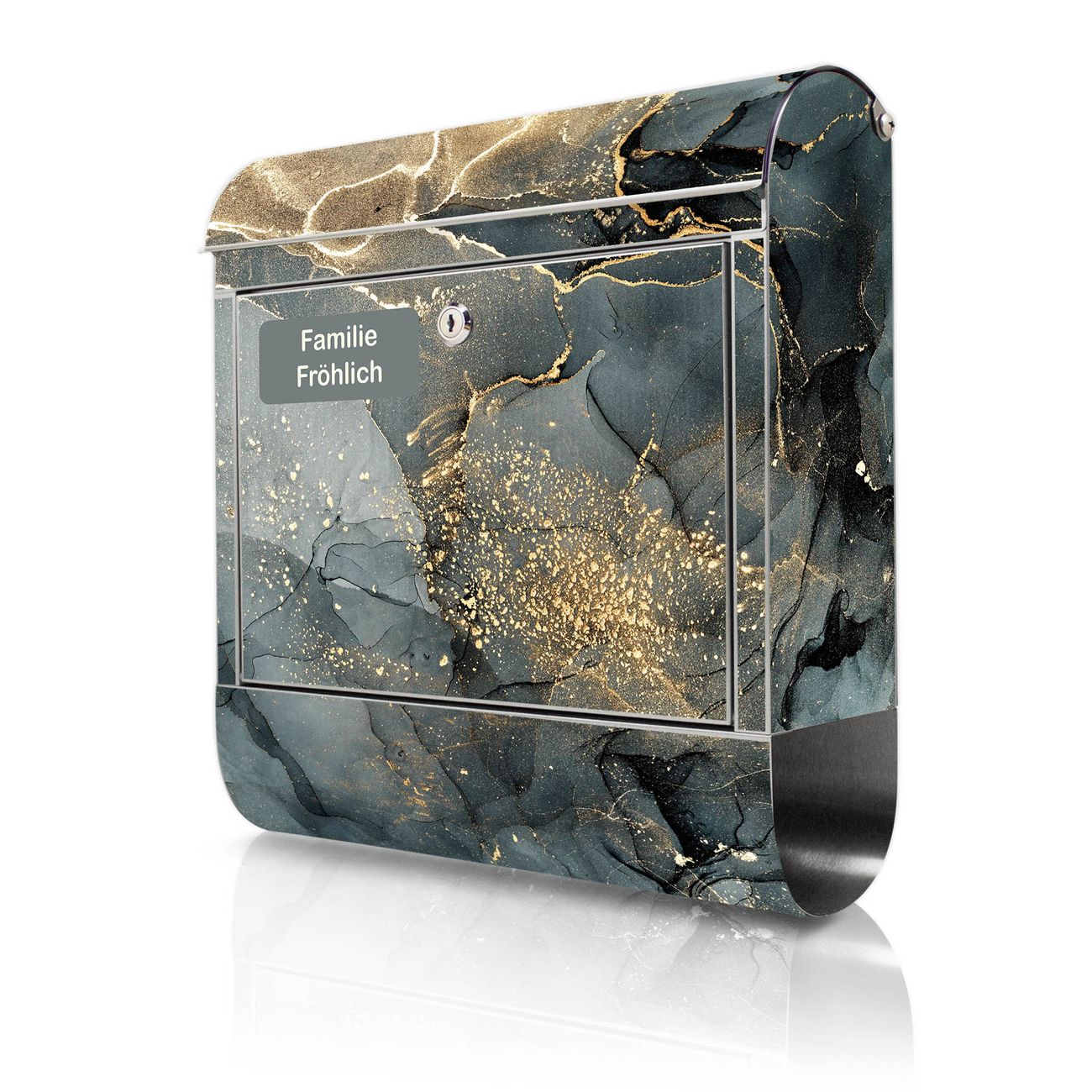 Wandbriefkasten Edelstahl Motiv grauer Marmor mit Gold 1