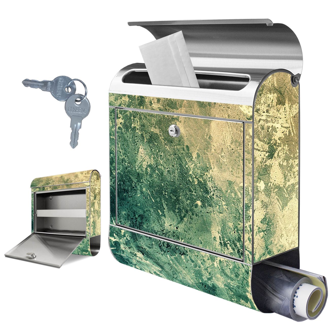 Wandbriefkasten Edelstahl Motiv Grüne Patina