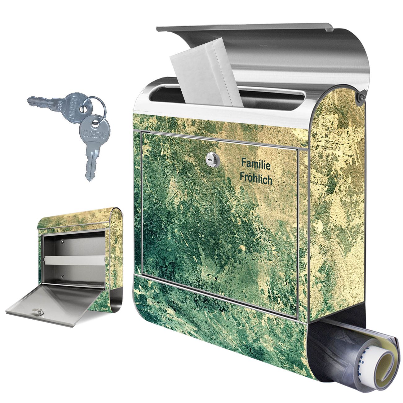 Wandbriefkasten Edelstahl Motiv Grüne Patina