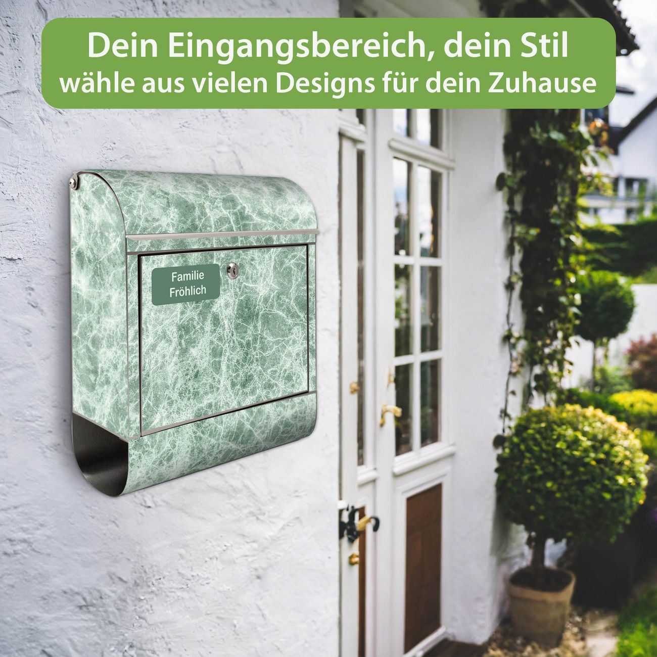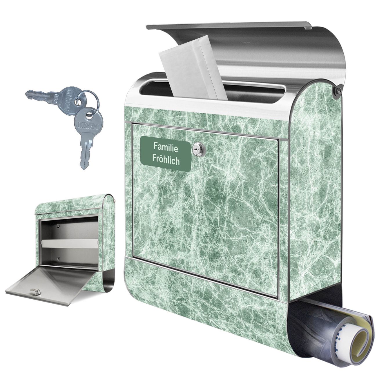 Wandbriefkasten Edelstahl Motiv Grüner Marmor 1
