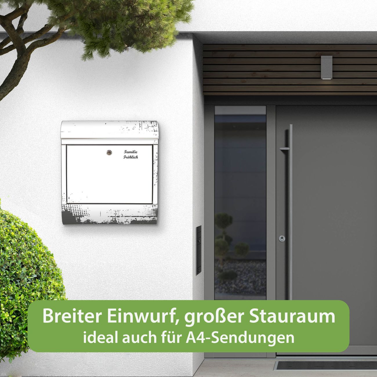 Wandbriefkasten Edelstahl Motiv Grunge-Rahmen