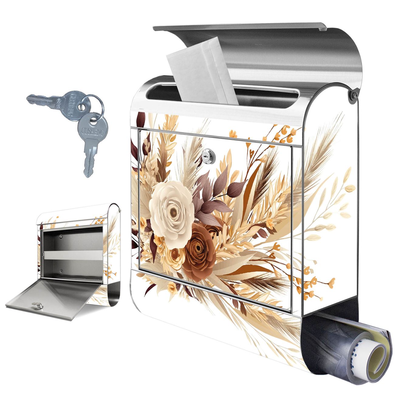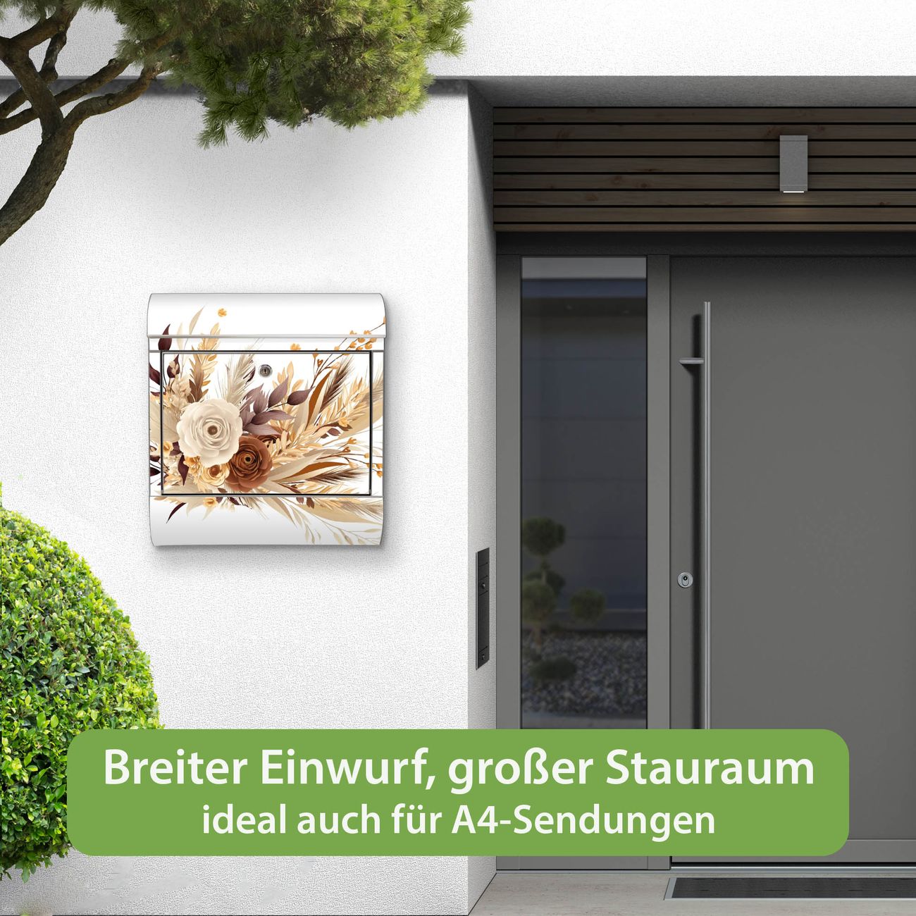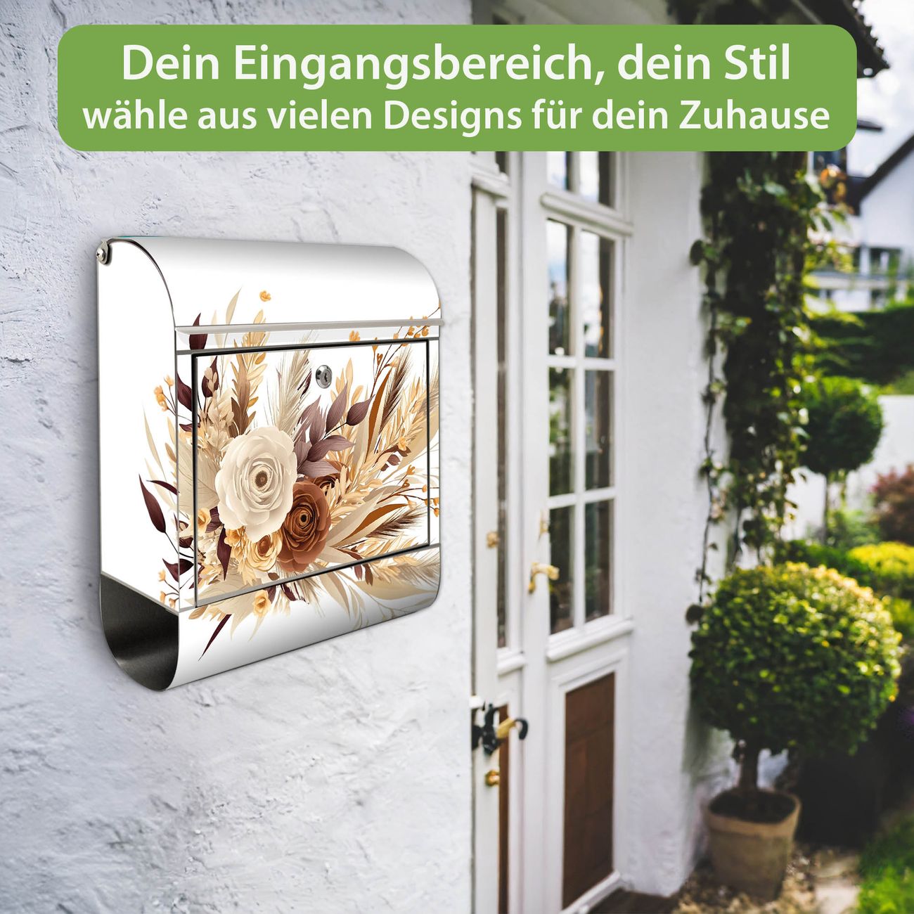 Wandbriefkasten Edelstahl Motiv Herbstlicher Blumenstrauß