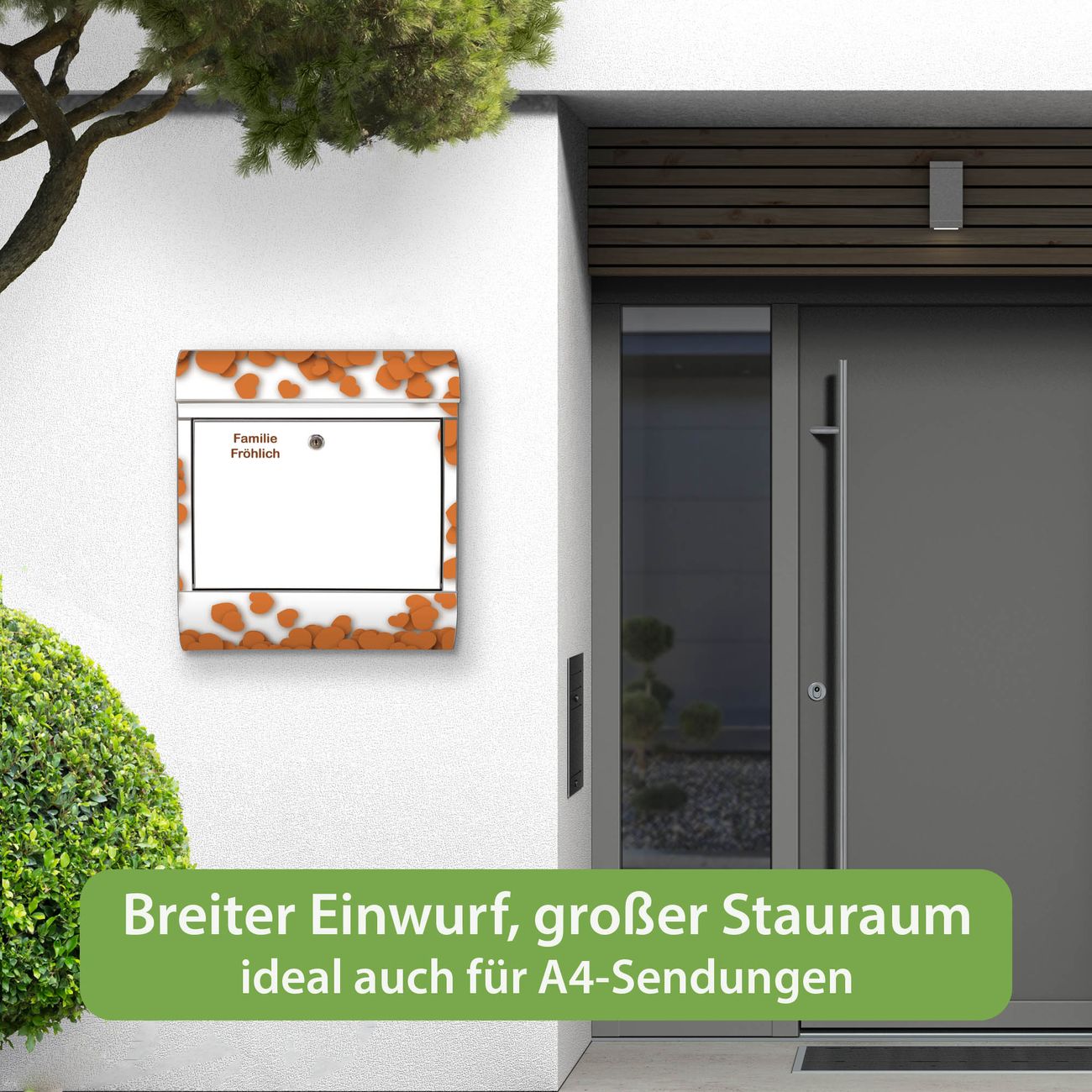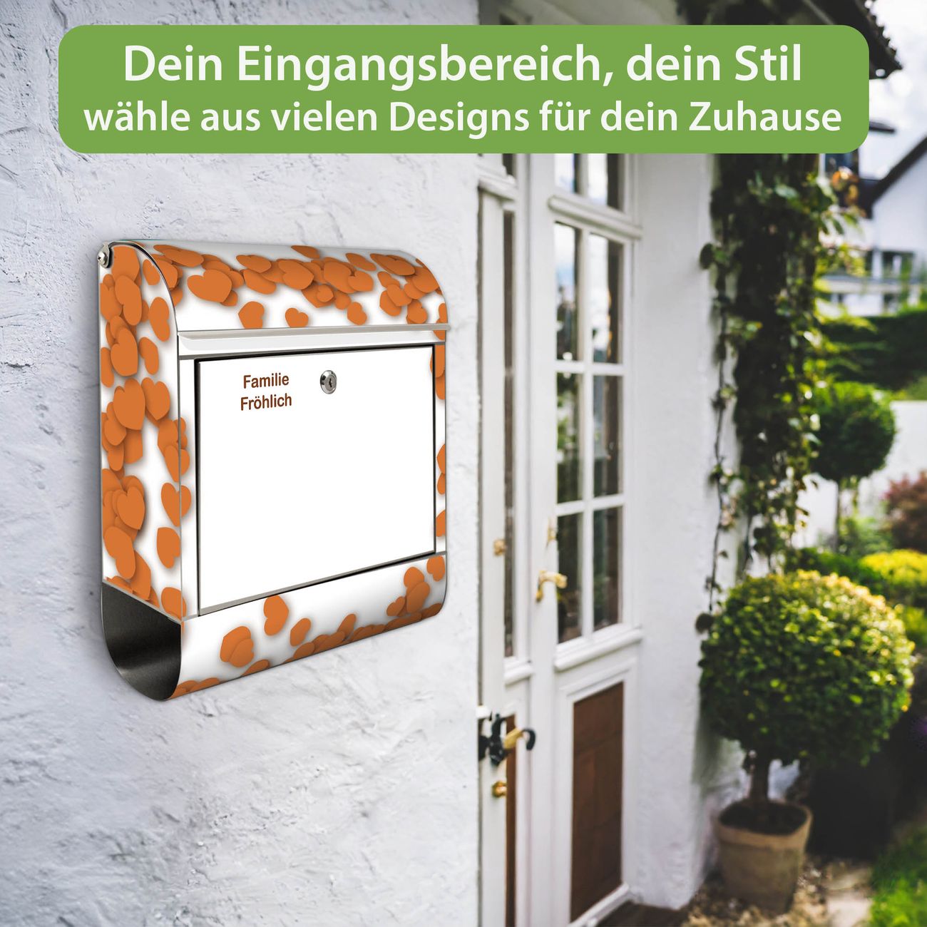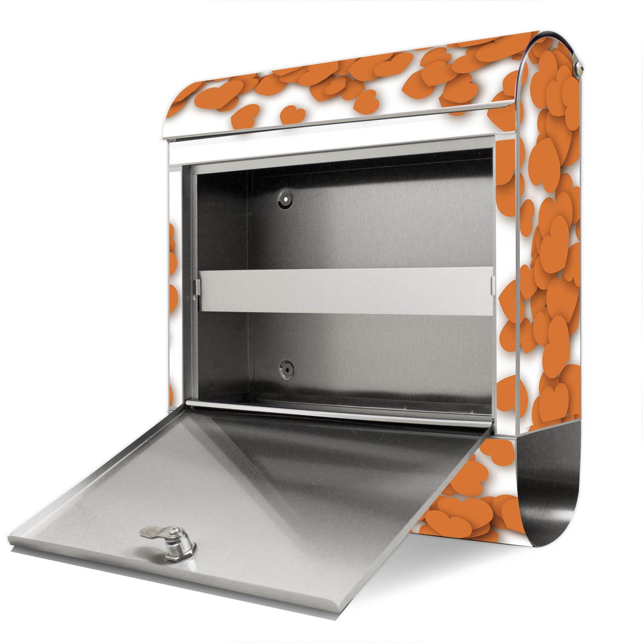 Wandbriefkasten Edelstahl Motiv Herzrahmen in Orange