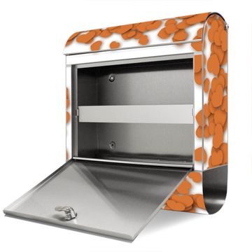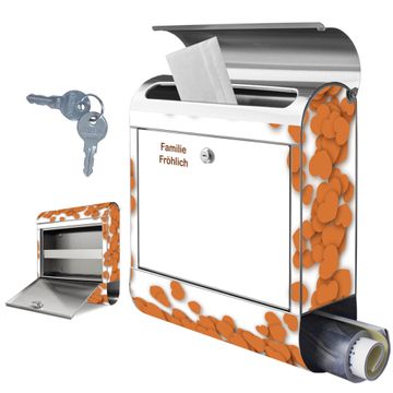 FUNKTION: Der banjado Edelstahl Briefkasten mit Motiv Motiv Herzrahmen in Orange bietet Ihnen mit seinem Fassungsvermögen genügend Platz auch für große A4 Sendungen. Das integrierte Zeitungsfach eignet sich hervorragend um unkompliziert die Tageszeitung zu fassen. Auf Wunsch können Sie bei uns den passenden Ständer kaufen und so aus dem Wandbriefkasten einen Standbriefkasten machen. DESIGN: Der Motivbriefkasten hat ein sehr ansprechendes und ausgefallenes Design, damit entlocken Sie Ihren Nachbarn und dem Postboten ein Lächeln. Heben Sie Sich ab von der tristen grauen Masse ohne auf Funktionalität zu verzichten. DETAILS: Der Design Briefkasten mit Motiv Motiv Herzrahmen in Orange besteht aus hochwertigem 18/0 Edelstahl. Das Motiv besteht aus einer wetter- und UV-resistenten Folie, die mit einem Schutzlaminat überzogen ist. Der Briefkasten wird mit Montagematerial und zwei Schlüsseln geliefert. NUTZEN: Sie können diesen Briefkasten sowohl als Wandbriefkasten montieren oder einen passenden Ständer auswählen und als Standbriefkasten einbetonieren. Die Größe bietet genügend Platz für Sendungen aller Art, das hochwertige Edelstahl ist rostfrei und die Motivfolie absolut wetterfest. SCHUTZ: Um Ihre Post optimal vor Witterungseinflüssen wie Starkregen zu schützen, empfehlen wir, den Briefkasten geschützt anzubringen. BANJADO: Ihr Briefkasten wird in Sachsen in einer kleinen Manufaktur von Hand veredelt. Die Motivfolie ist lösungsmittelfrei und schutzlaminiert, dies sorgt für einen langen Halt. Wir legen großen Wert auf die Verbindung von Funktionalität und Design. Sie erhalten Handarbeit aus Sachsen.