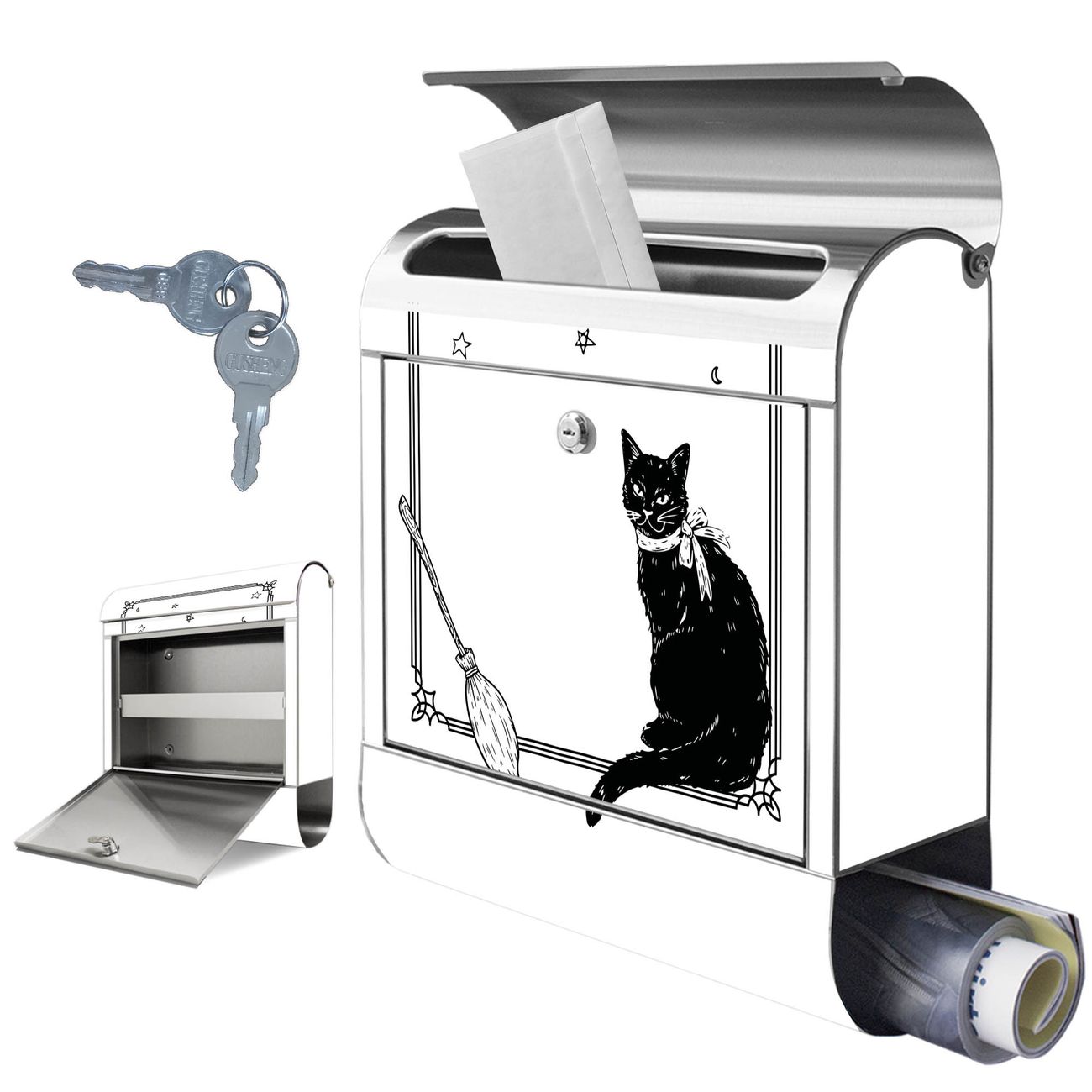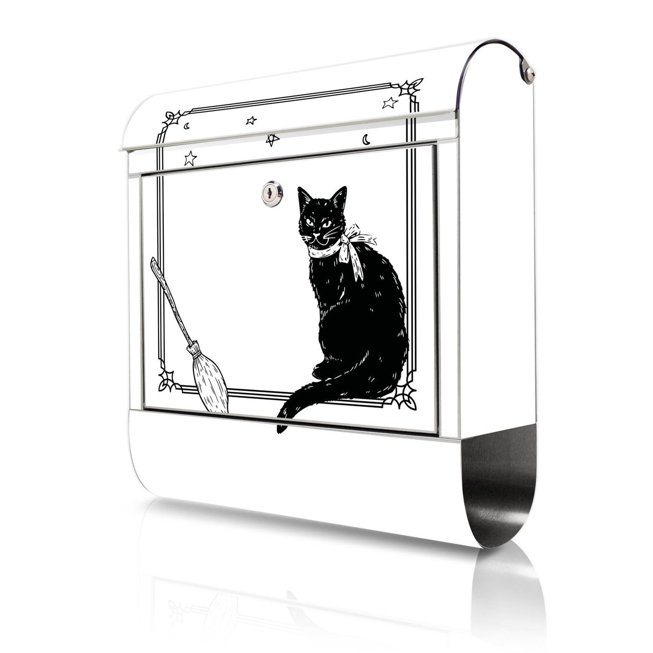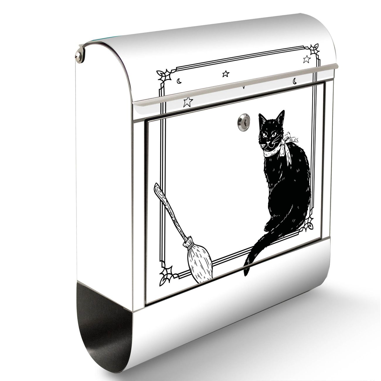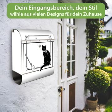 Wandbriefkasten Edelstahl Motiv Hexen und Kater