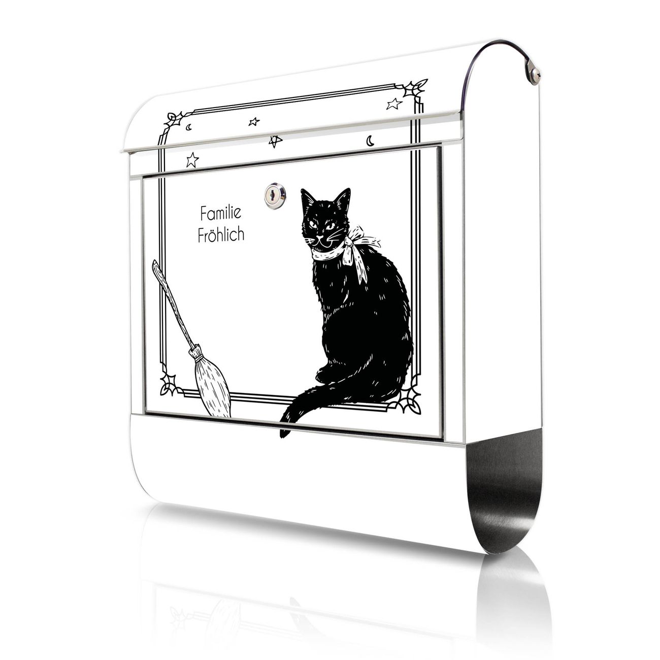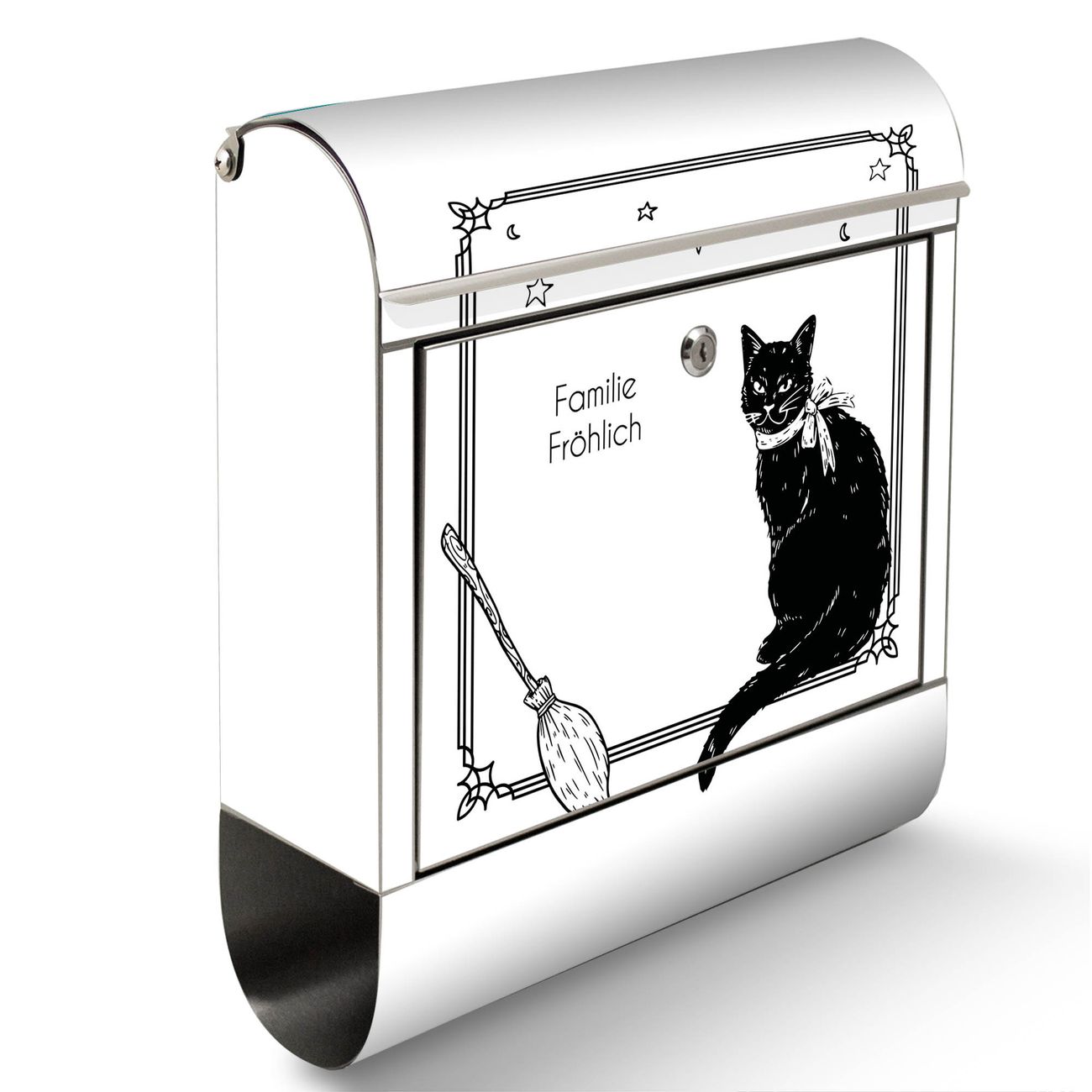 Wandbriefkasten Edelstahl Motiv Hexen und Kater