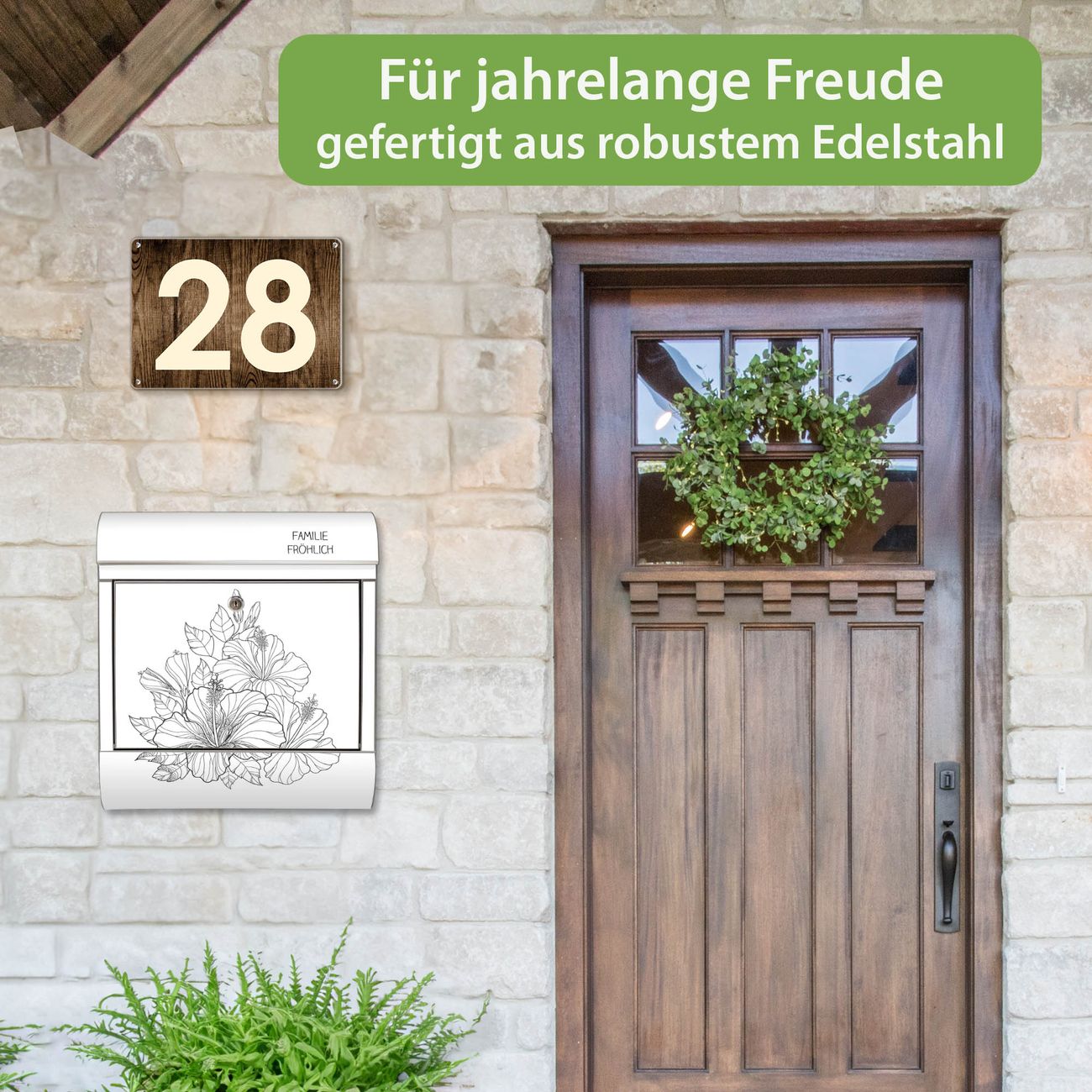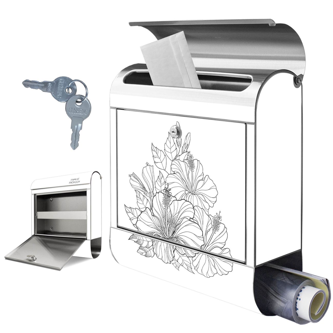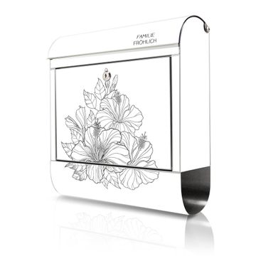 Wandbriefkasten Edelstahl Motiv Hibiskus 2