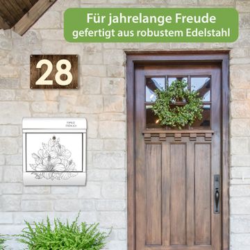 FUNKTION: Der banjado Edelstahl Briefkasten mit Motiv Motiv Hibiskus 2 bietet Ihnen mit seinem Fassungsvermögen genügend Platz auch für große A4 Sendungen. Das integrierte Zeitungsfach eignet sich hervorragend um unkompliziert die Tageszeitung zu fassen. Auf Wunsch können Sie bei uns den passenden Ständer kaufen und so aus dem Wandbriefkasten einen Standbriefkasten machen. DESIGN: Der Motivbriefkasten hat ein sehr ansprechendes und ausgefallenes Design, damit entlocken Sie Ihren Nachbarn und dem Postboten ein Lächeln. Heben Sie Sich ab von der tristen grauen Masse ohne auf Funktionalität zu verzichten. DETAILS: Der Design Briefkasten mit Motiv Motiv Hibiskus 2 besteht aus hochwertigem 18/0 Edelstahl. Das Motiv besteht aus einer wetter- und UV-resistenten Folie, die mit einem Schutzlaminat überzogen ist. Der Briefkasten wird mit Montagematerial und zwei Schlüsseln geliefert. NUTZEN: Sie können diesen Briefkasten sowohl als Wandbriefkasten montieren oder einen passenden Ständer auswählen und als Standbriefkasten einbetonieren. Die Größe bietet genügend Platz für Sendungen aller Art, das hochwertige Edelstahl ist rostfrei und die Motivfolie absolut wetterfest. SCHUTZ: Um Ihre Post optimal vor Witterungseinflüssen wie Starkregen zu schützen, empfehlen wir, den Briefkasten geschützt anzubringen. BANJADO: Ihr Briefkasten wird in Sachsen in einer kleinen Manufaktur von Hand veredelt. Die Motivfolie ist lösungsmittelfrei und schutzlaminiert, dies sorgt für einen langen Halt. Wir legen großen Wert auf die Verbindung von Funktionalität und Design. Sie erhalten Handarbeit aus Sachsen.