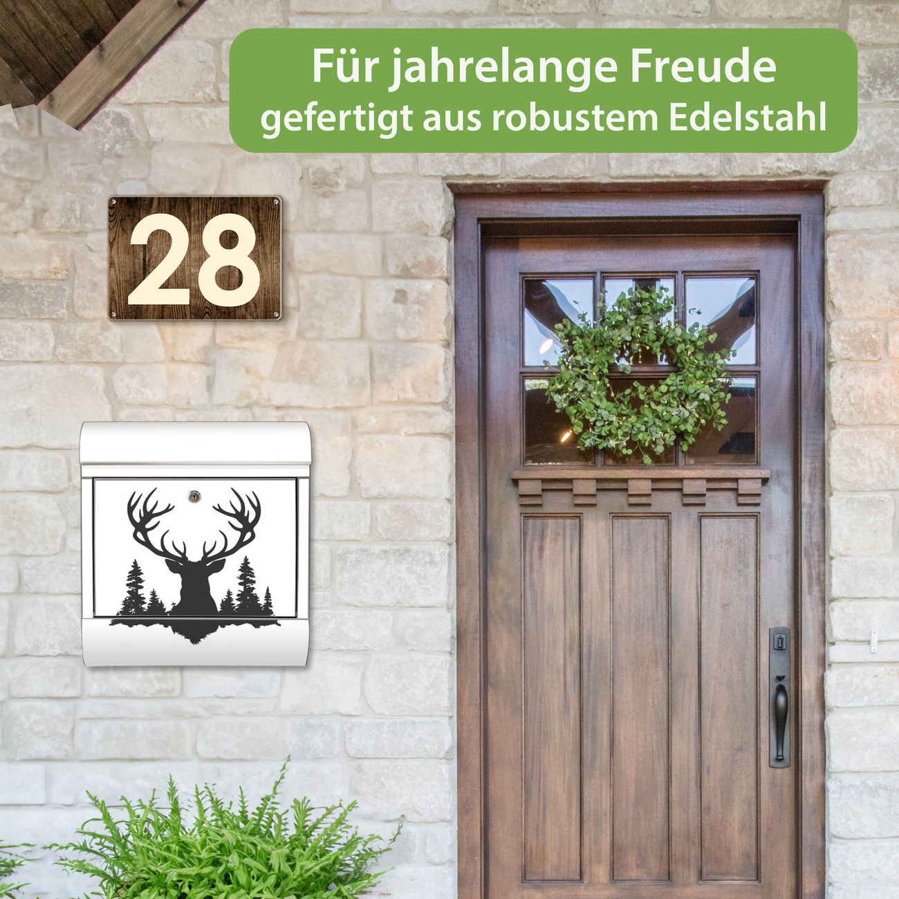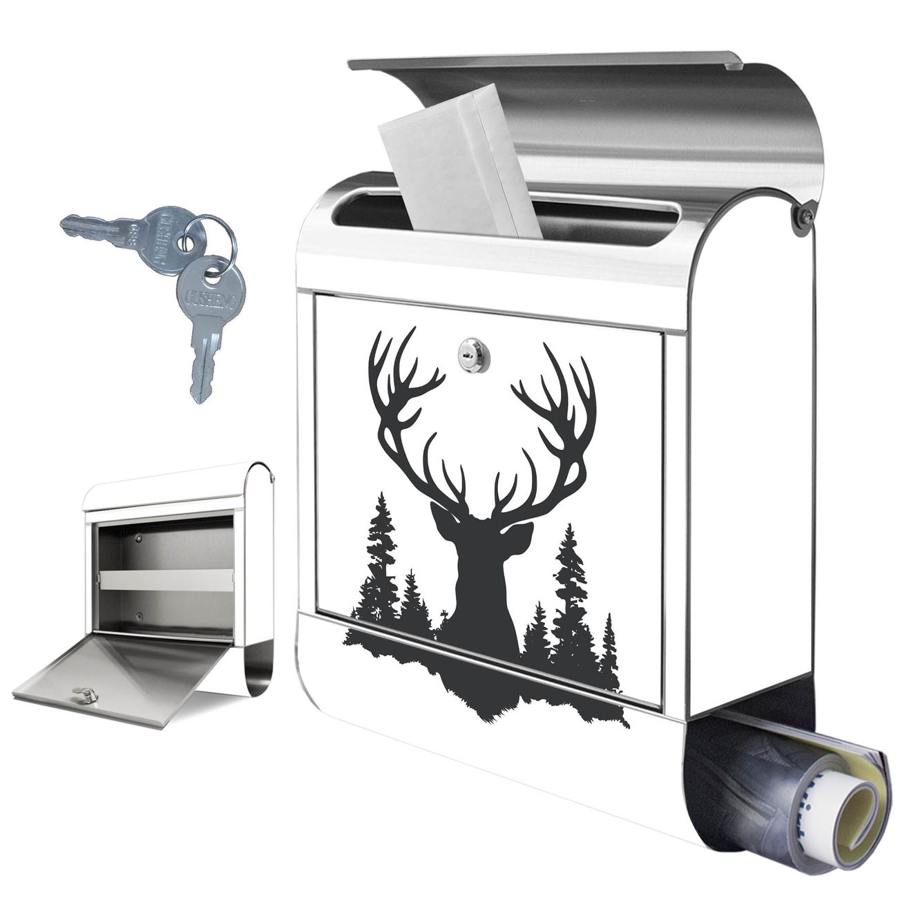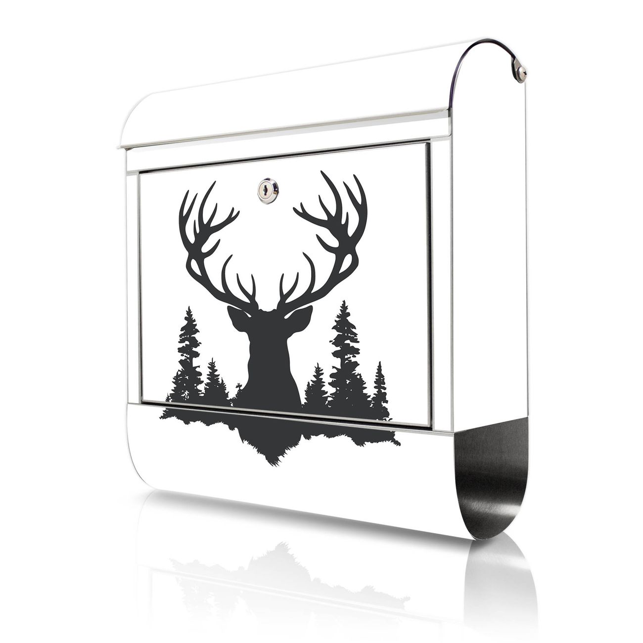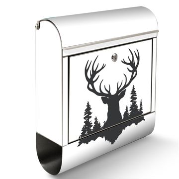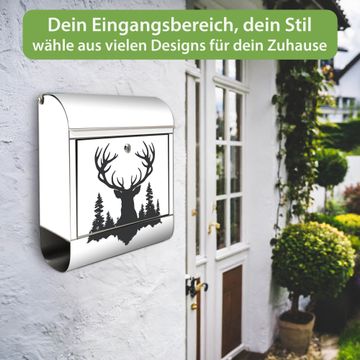 Wandbriefkasten Edelstahl Motiv Hirsch im Wald Silhouette
