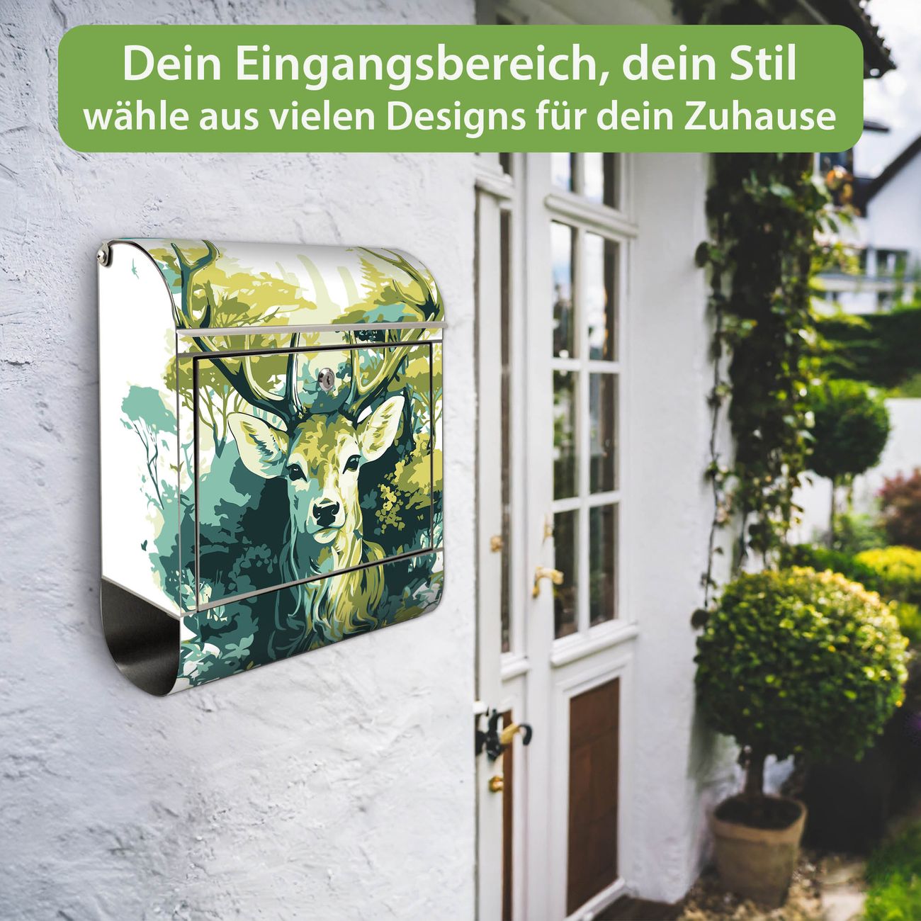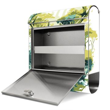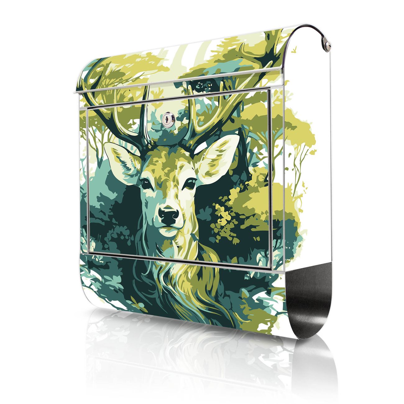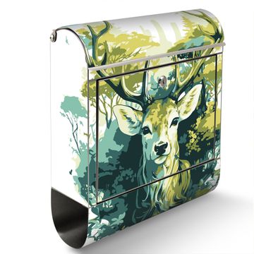Wandbriefkasten Edelstahl Motiv Hirsch Wald Aquarell