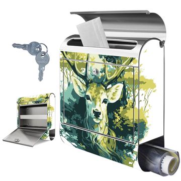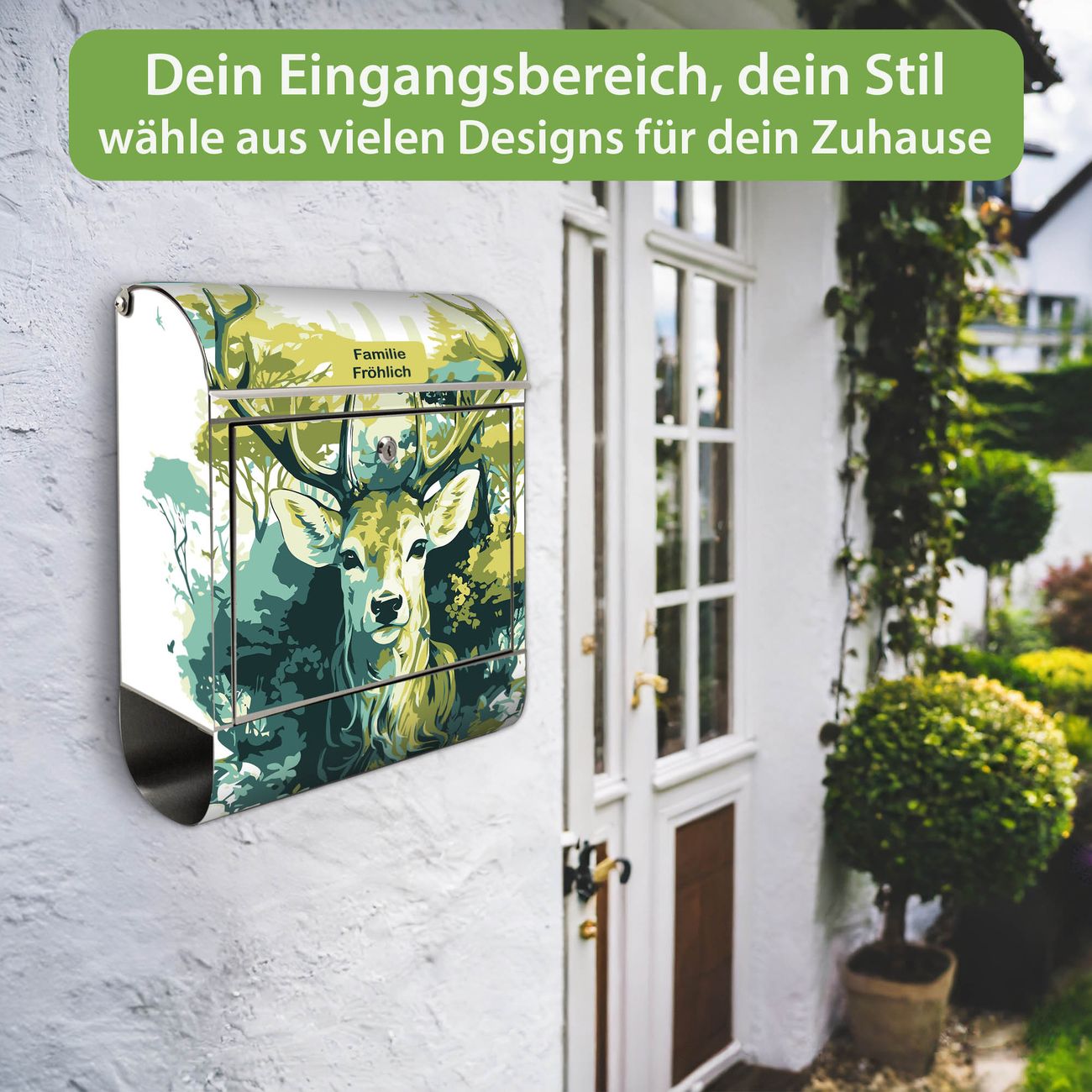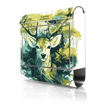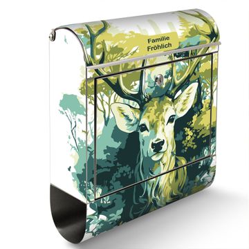 Wandbriefkasten Edelstahl Motiv Hirsch Wald Aquarell