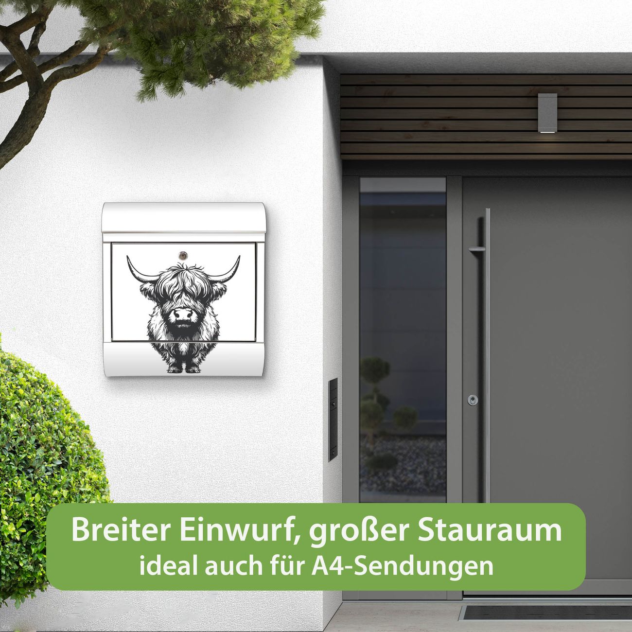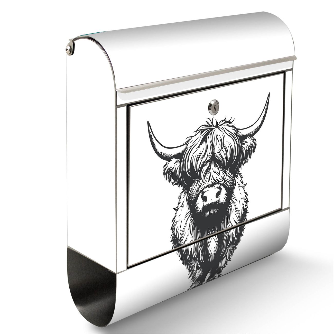 Wandbriefkasten Edelstahl Motiv Hochlandrind