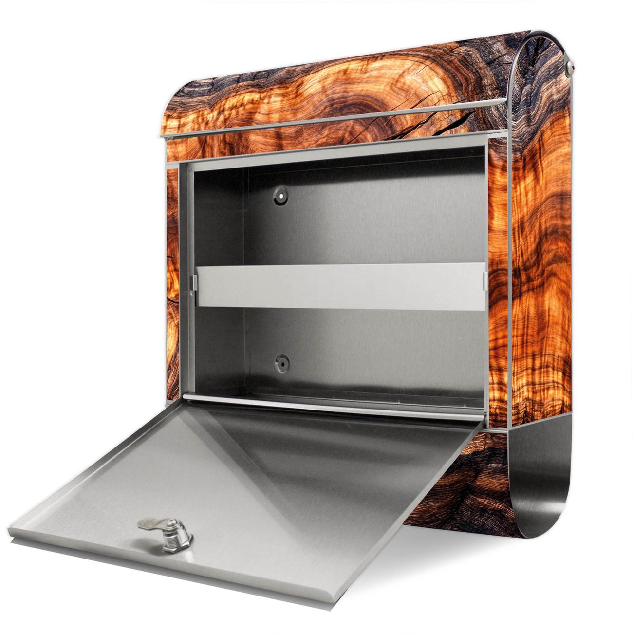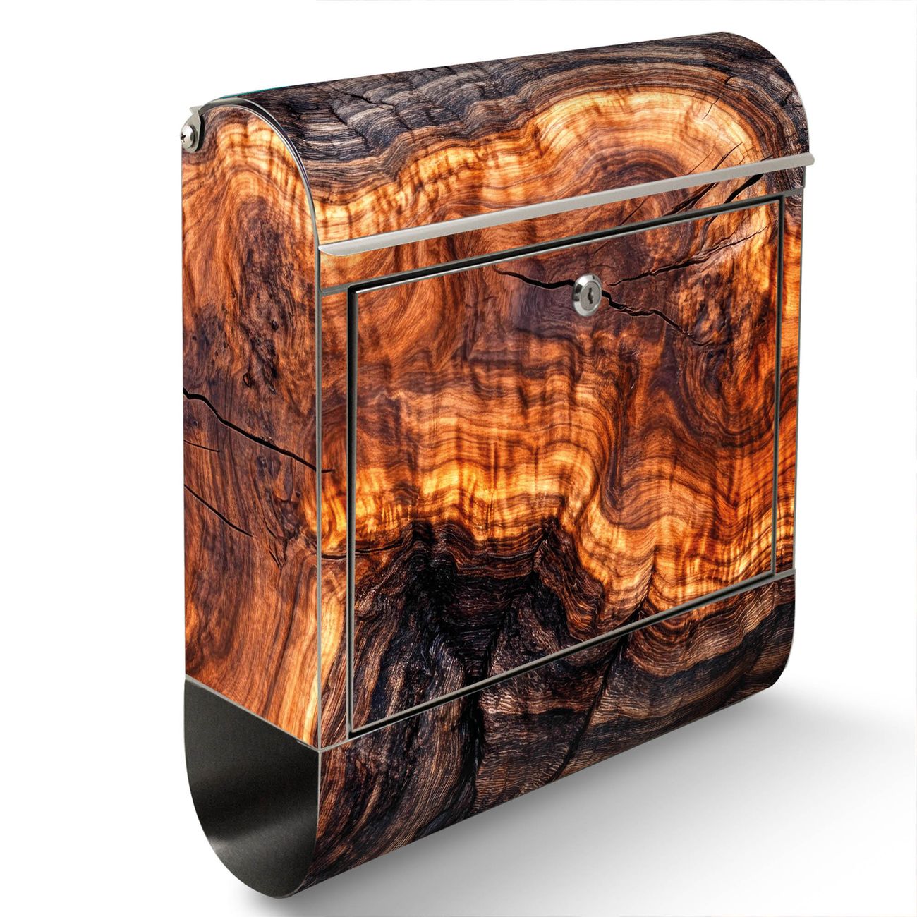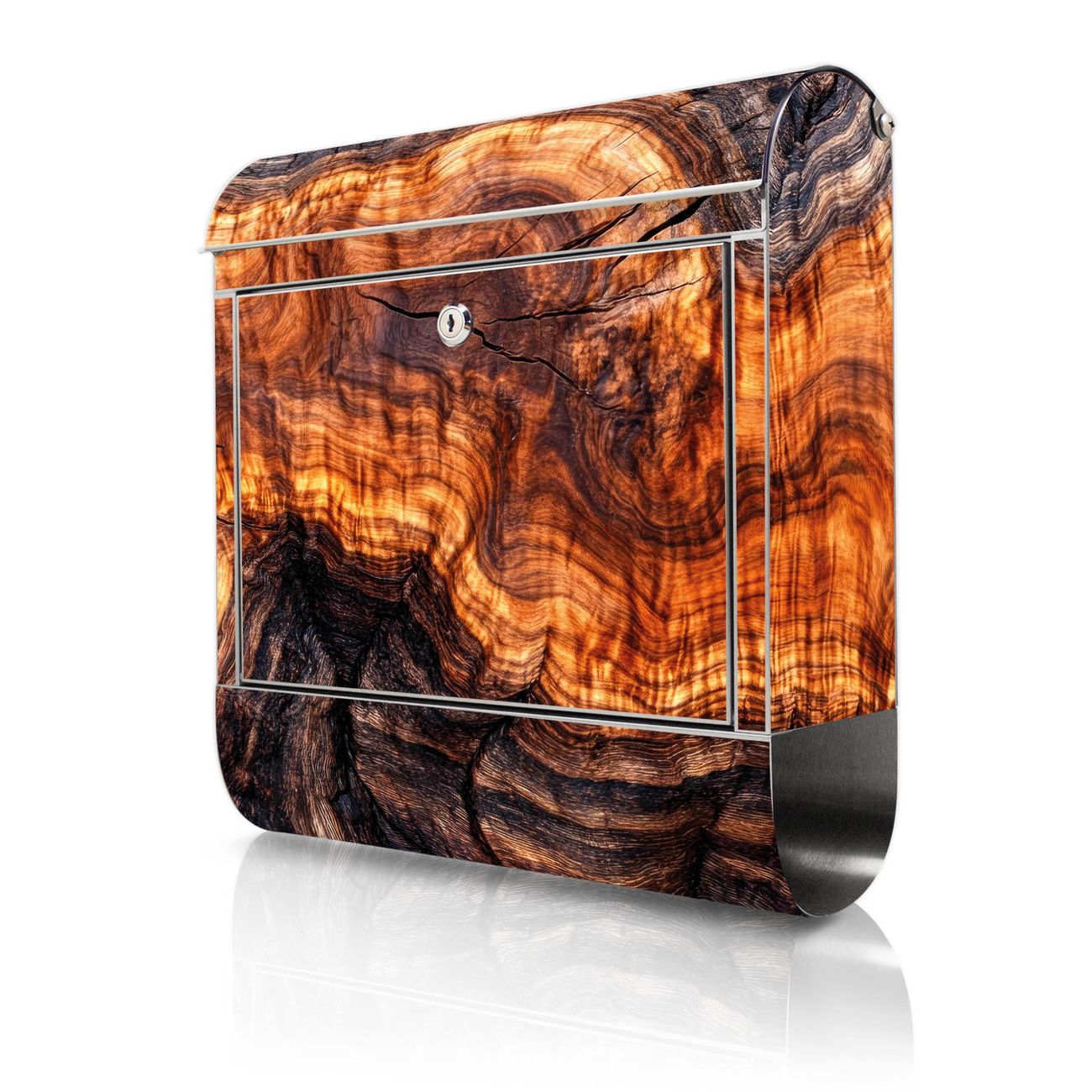 Wandbriefkasten Edelstahl Motiv Holz Gemasert Fluss Warm