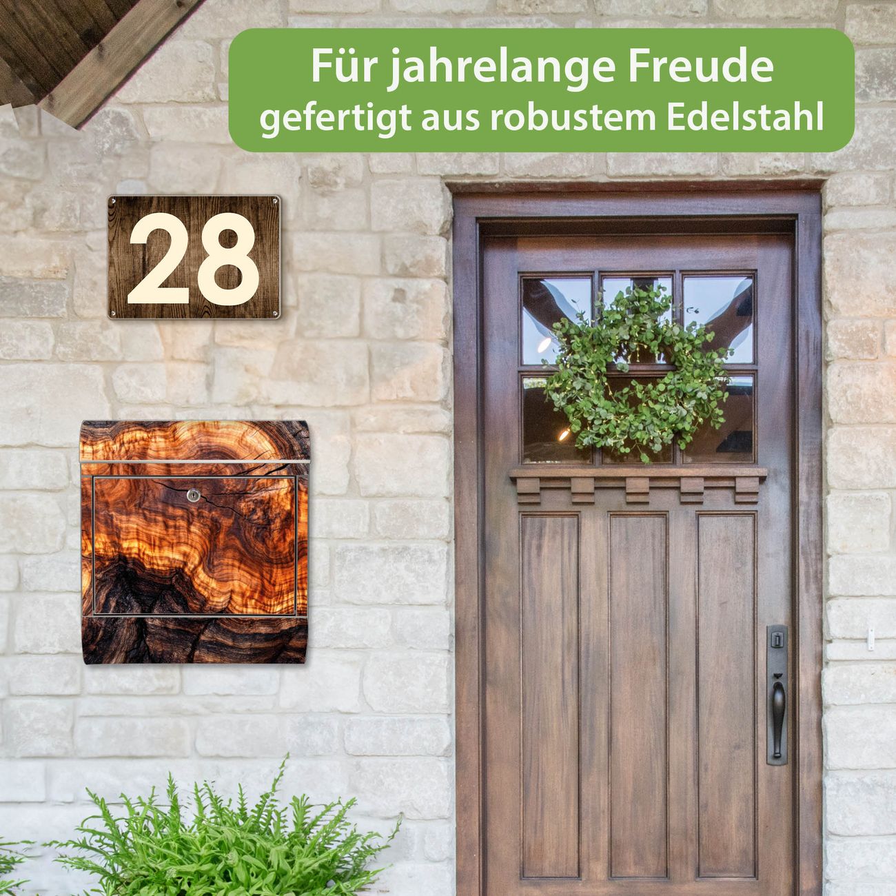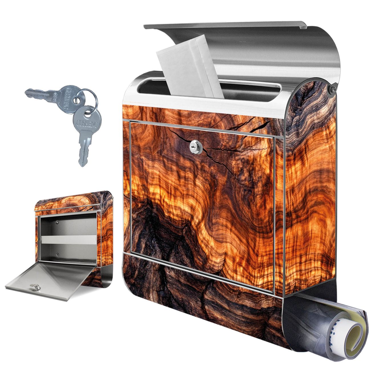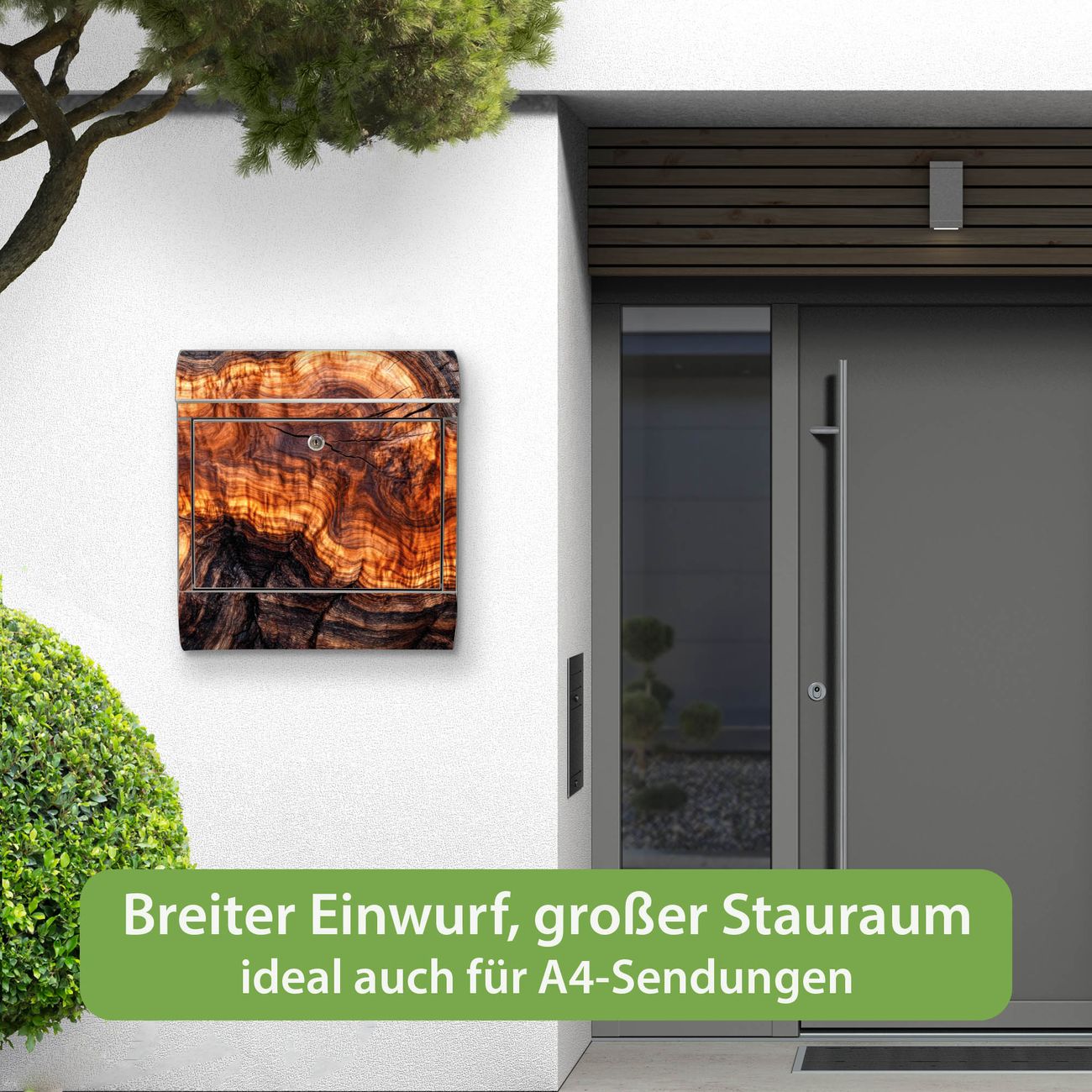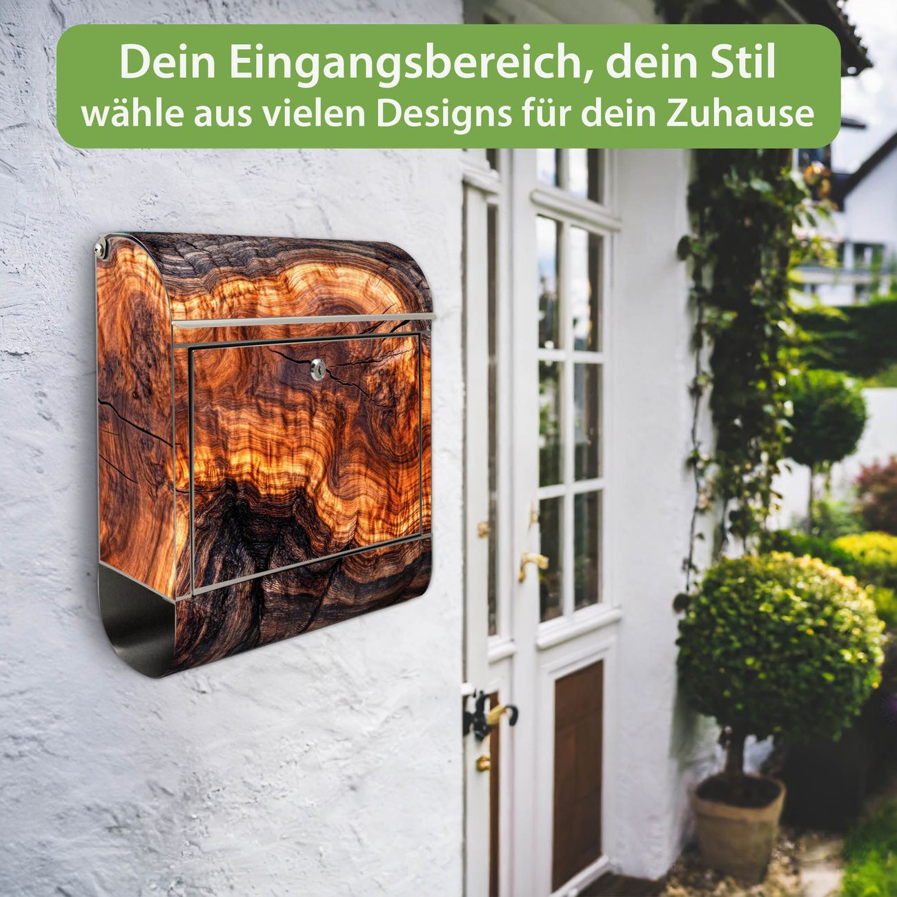 Wandbriefkasten Edelstahl Motiv Holz Gemasert Fluss Warm
