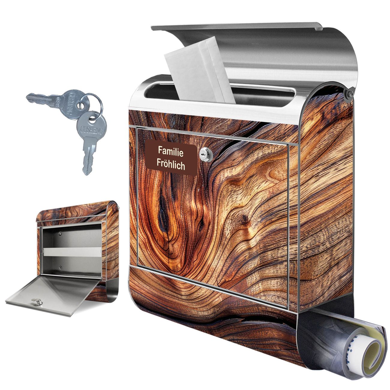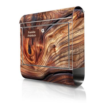 Wandbriefkasten Edelstahl Motiv Holz Gemasert Kurve