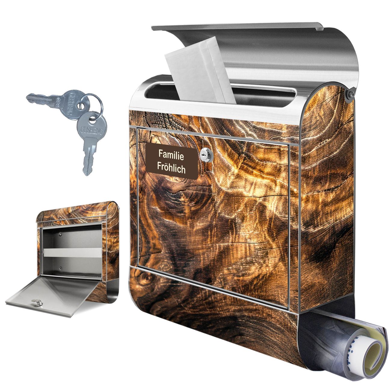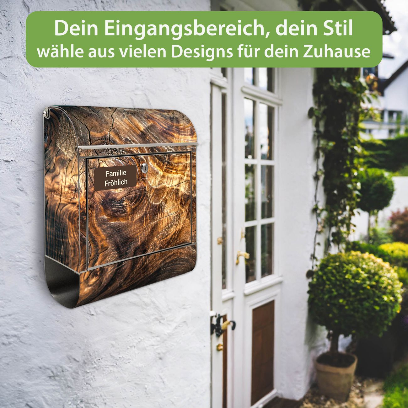 Wandbriefkasten Edelstahl Motiv Holz Gemasert Lichtspiel