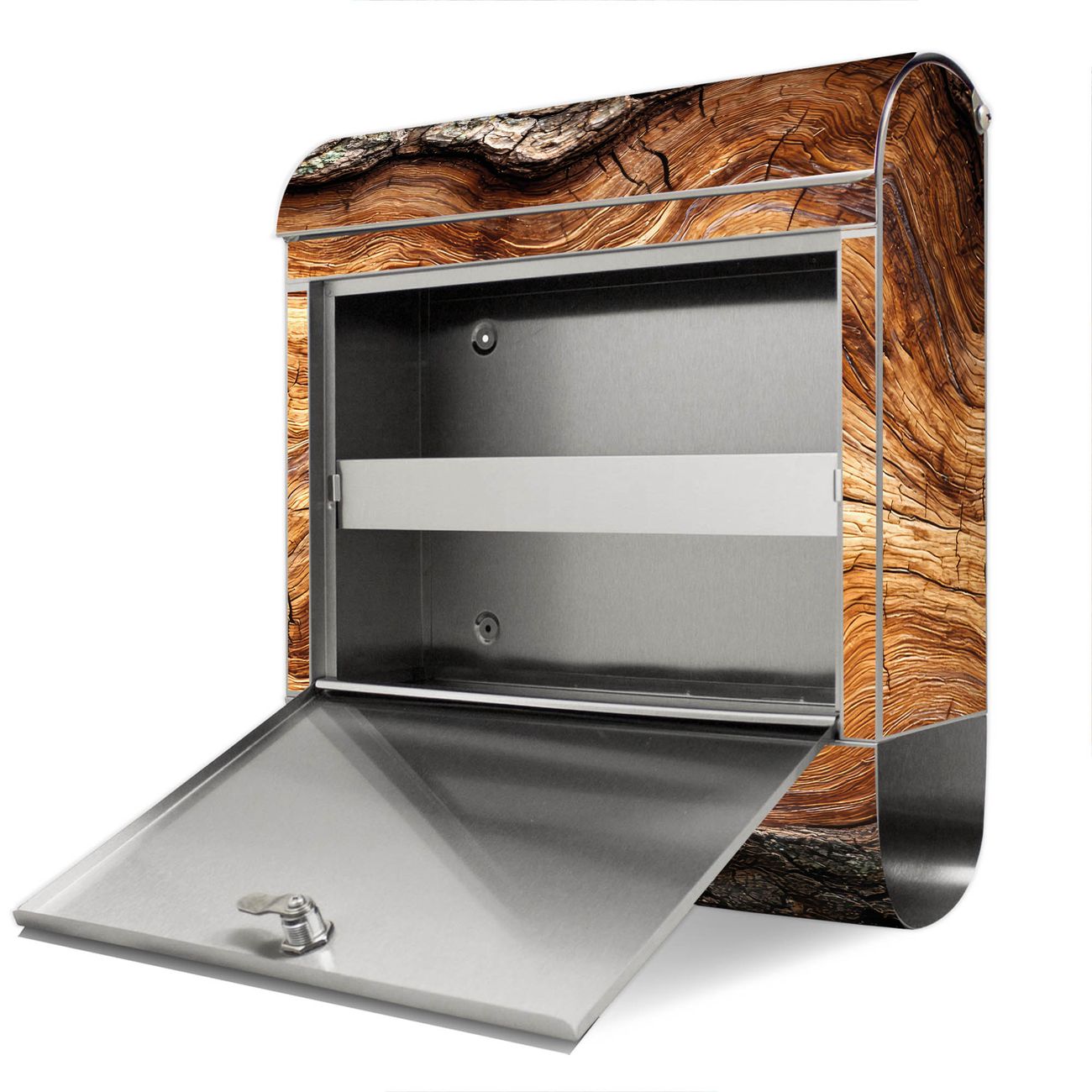 Wandbriefkasten Edelstahl Motiv Holz Gemasert mit Rinde
