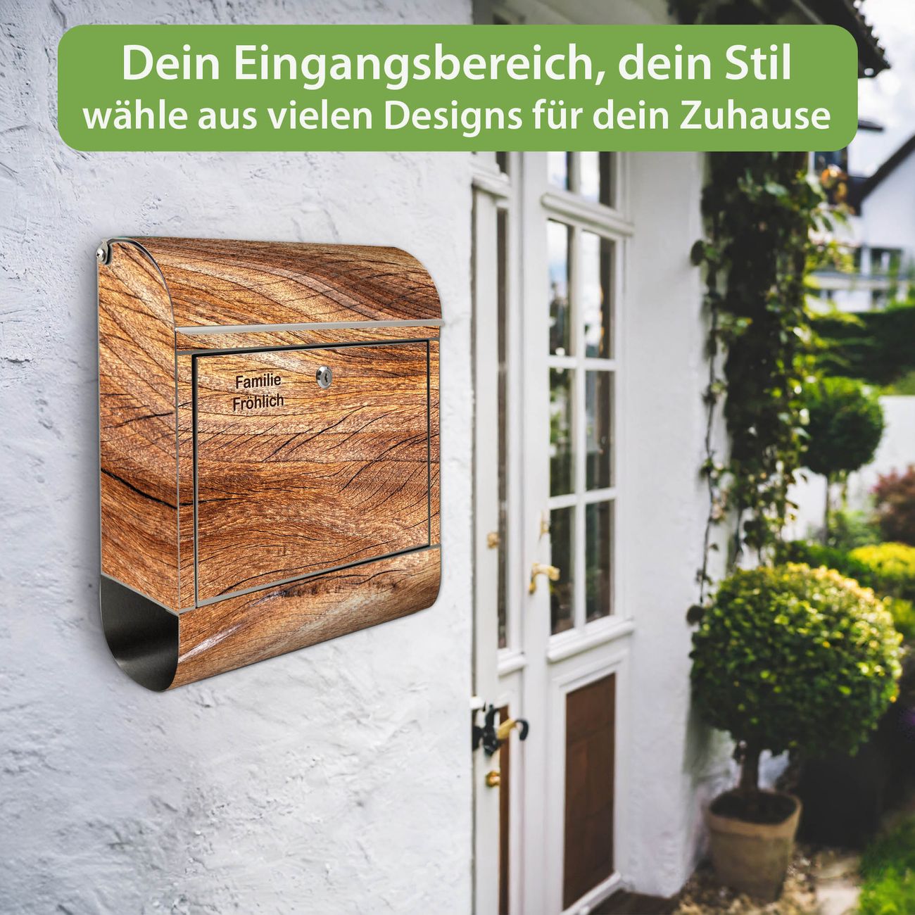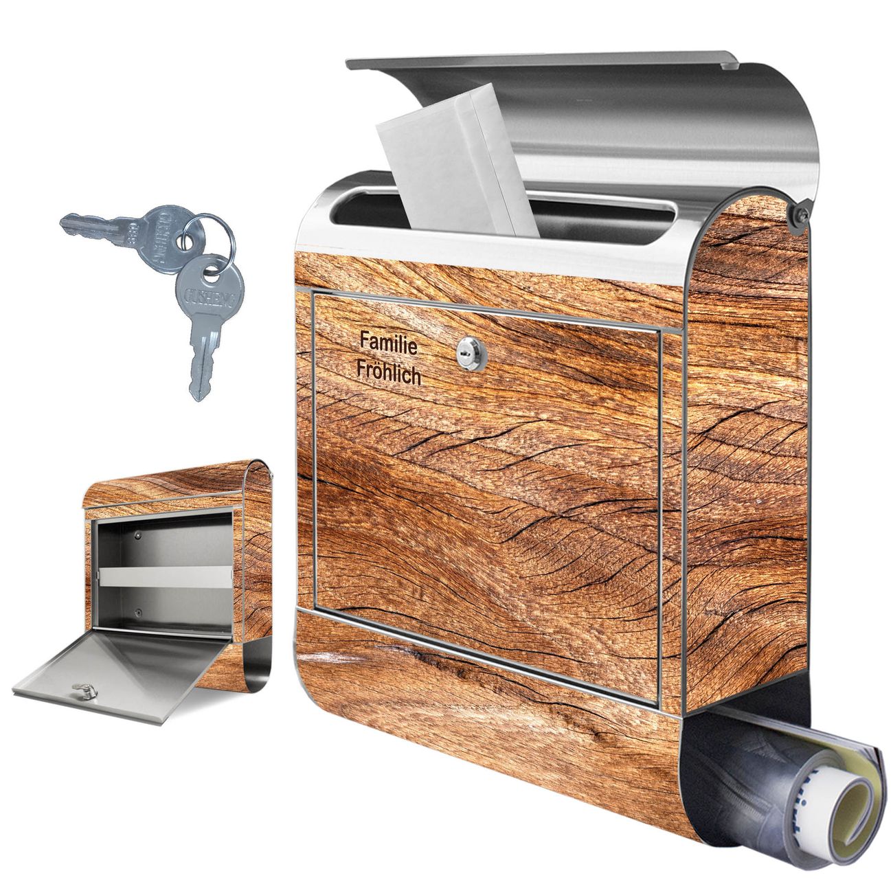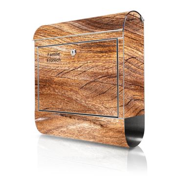 Wandbriefkasten Edelstahl Motiv Holz Struktur Fließend