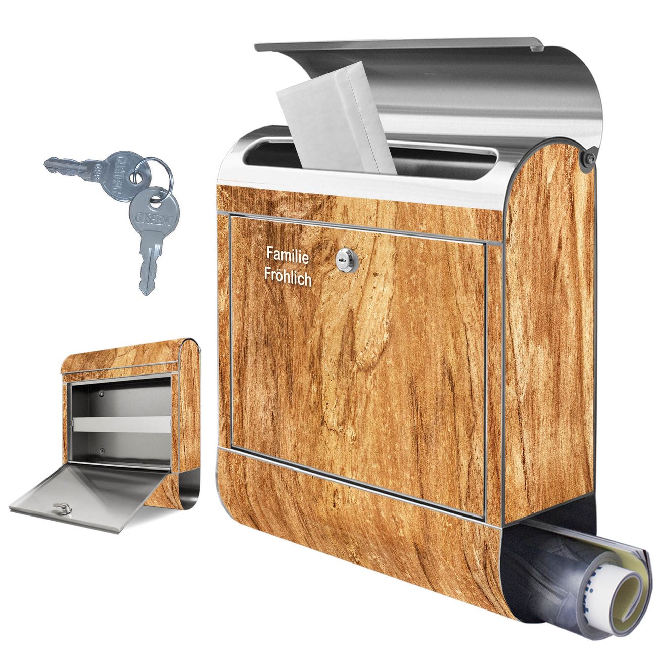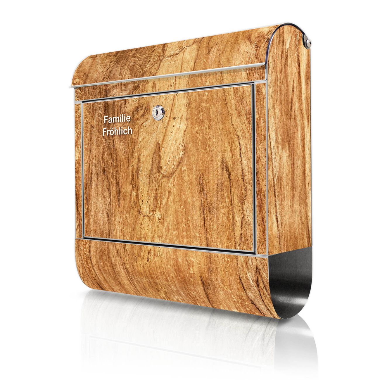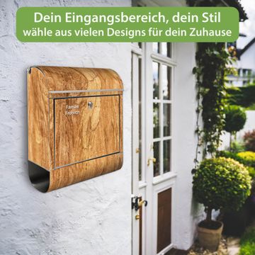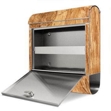 Wandbriefkasten Edelstahl Motiv Holz Struktur mit Astloch