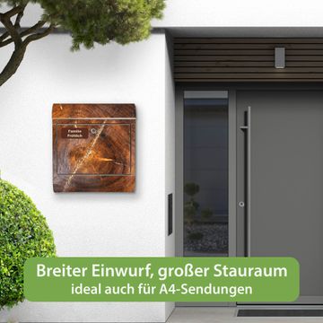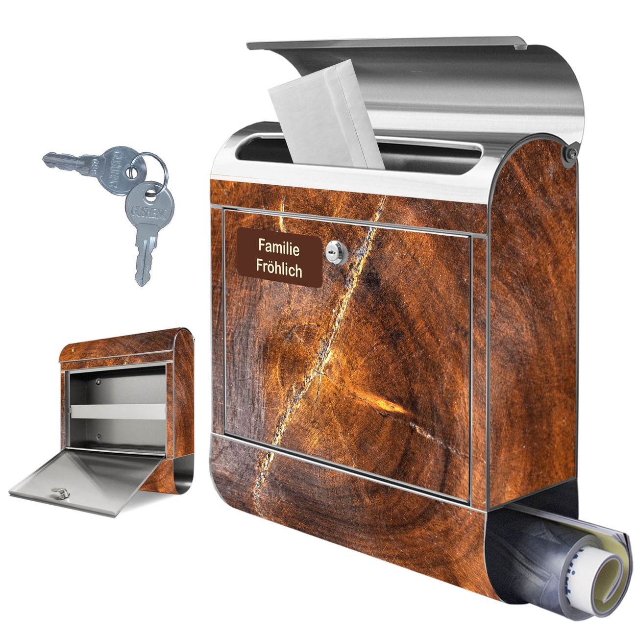 Wandbriefkasten Edelstahl Motiv Holzring mit Rissen