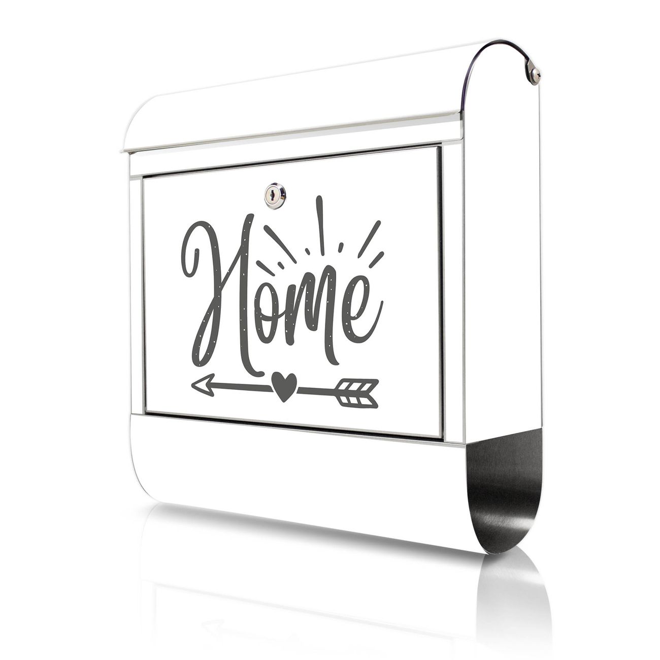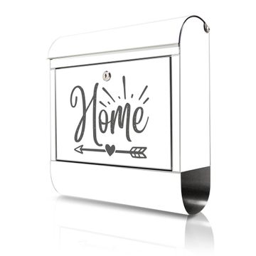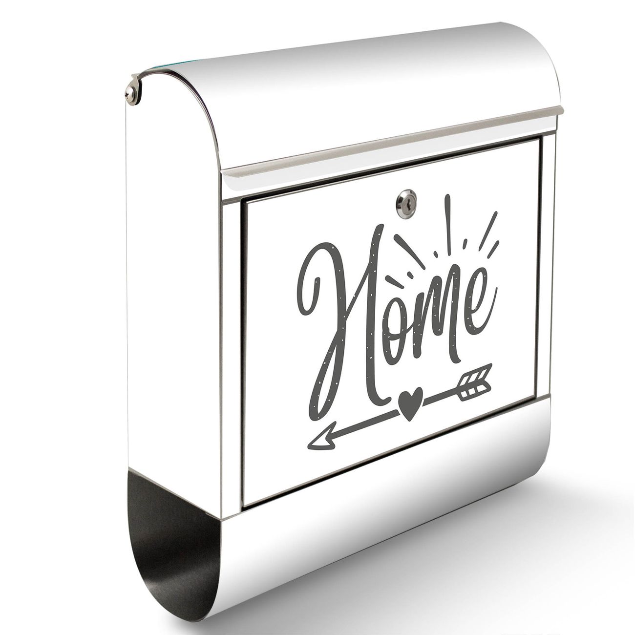 Wandbriefkasten Edelstahl Motiv Home mit Pfeil