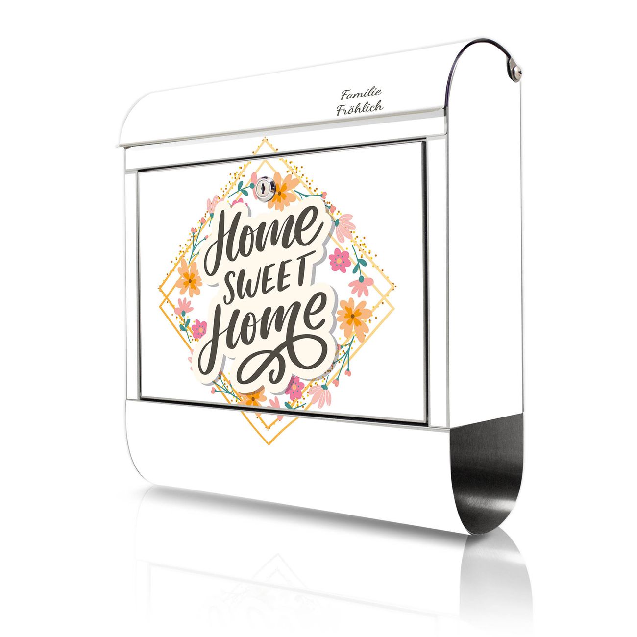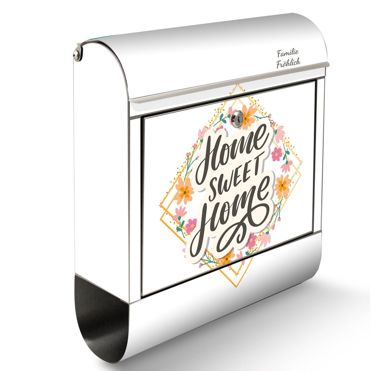 Wandbriefkasten Edelstahl Motiv Home Sweet Home Schild