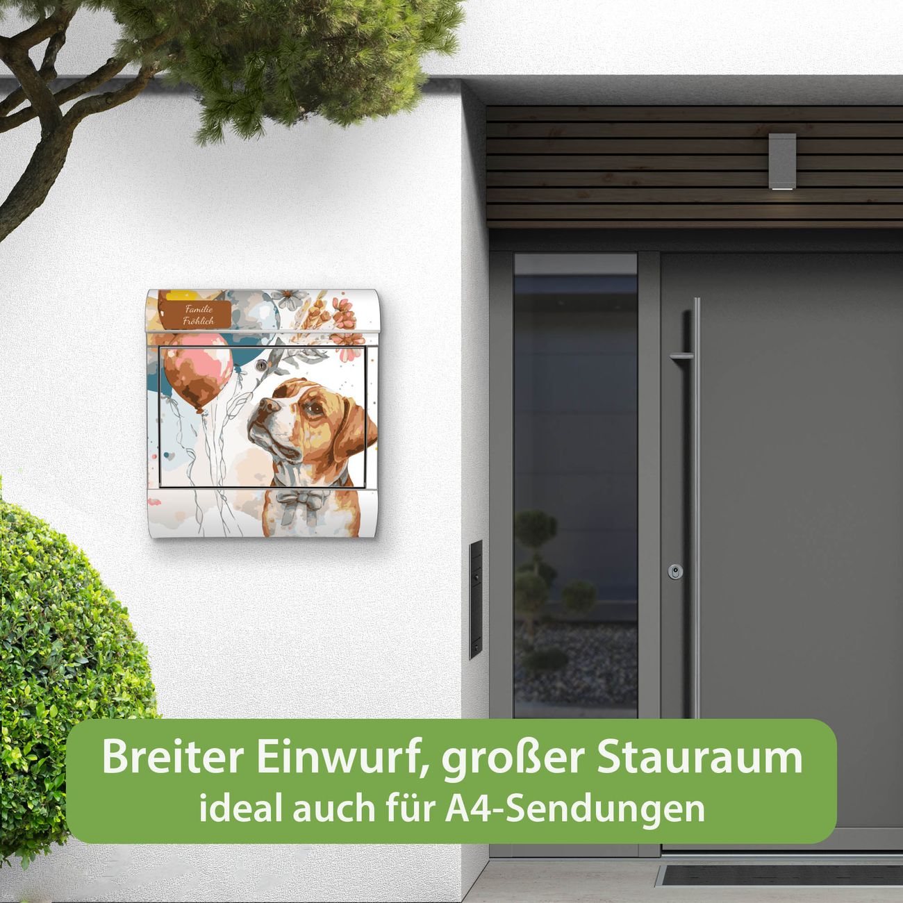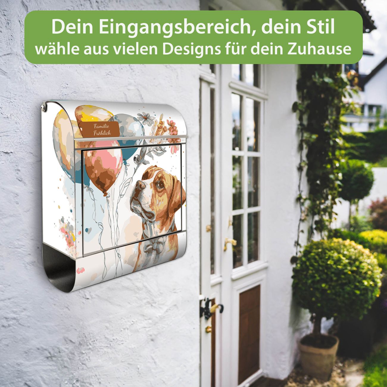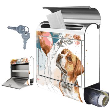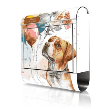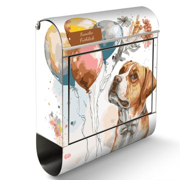 Wandbriefkasten Edelstahl Motiv Hund mit Ballons Aquarell