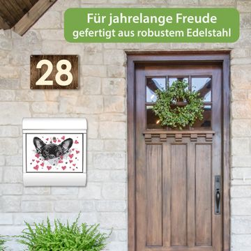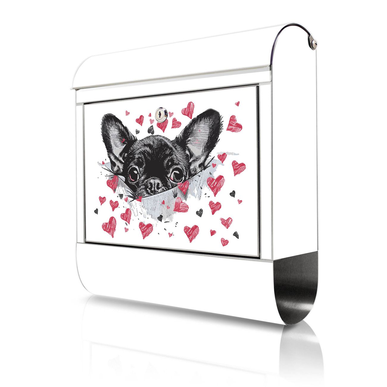Wandbriefkasten Edelstahl Motiv Hund mit Herzen