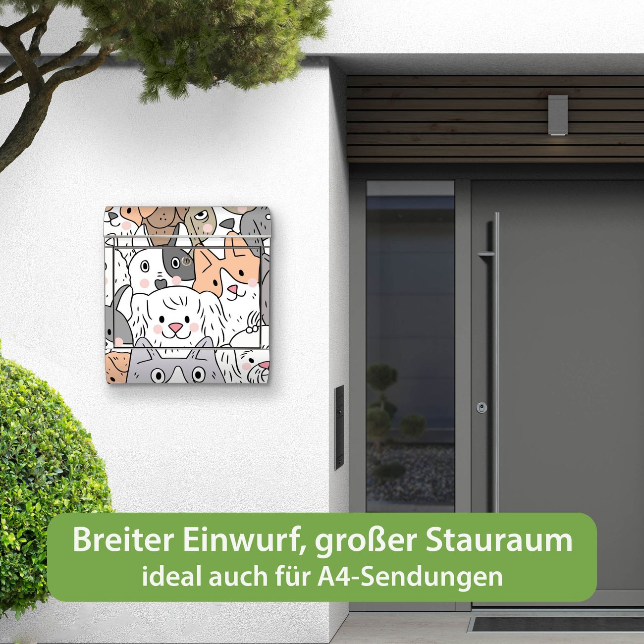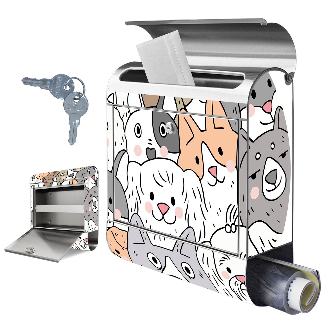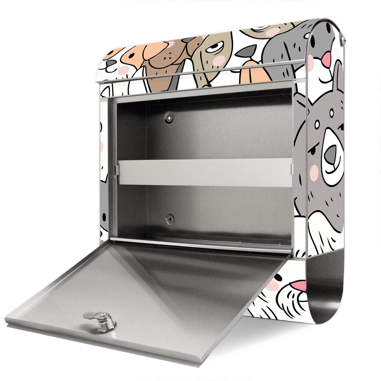 Wandbriefkasten Edelstahl Motiv Hunde Gruppe neugierig