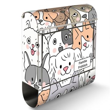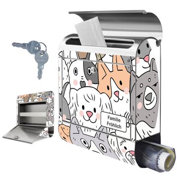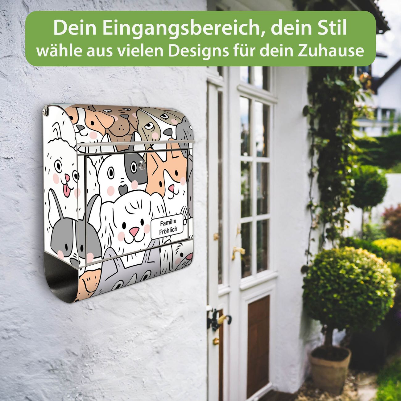 Wandbriefkasten Edelstahl Motiv Hunde Gruppe neugierig