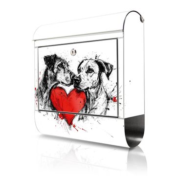 Wandbriefkasten Edelstahl Motiv Hunde mit Herz