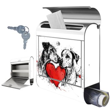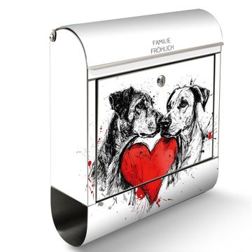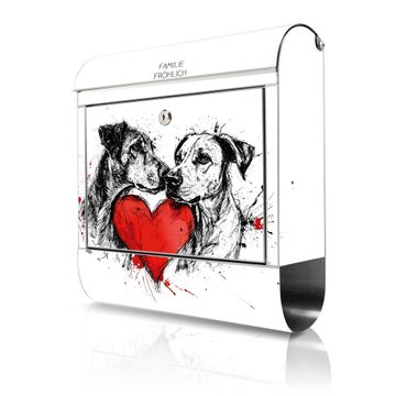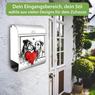 Wandbriefkasten Edelstahl Motiv Hunde mit Herz