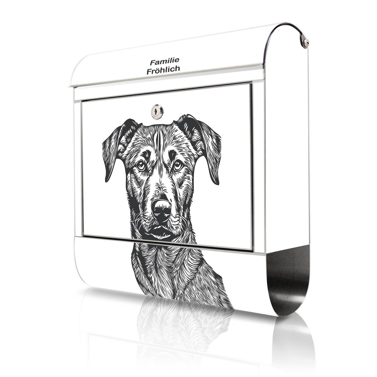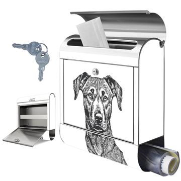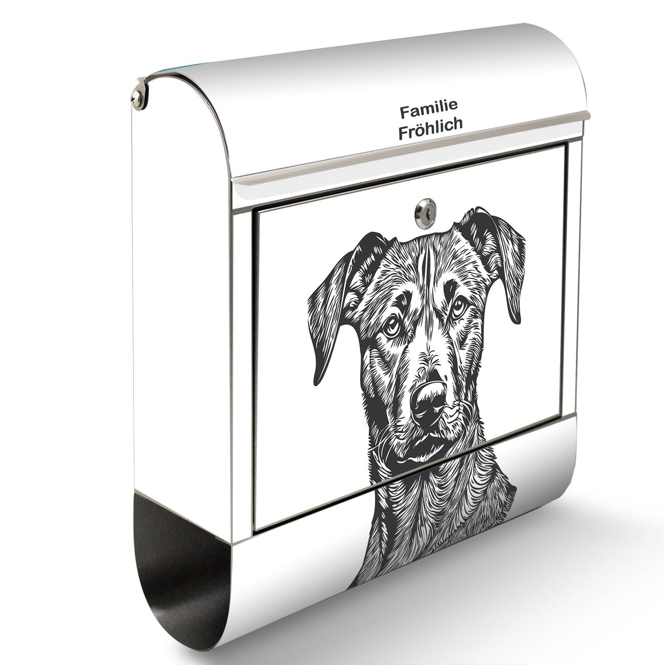 Wandbriefkasten Edelstahl Motiv Hundeskizze 1