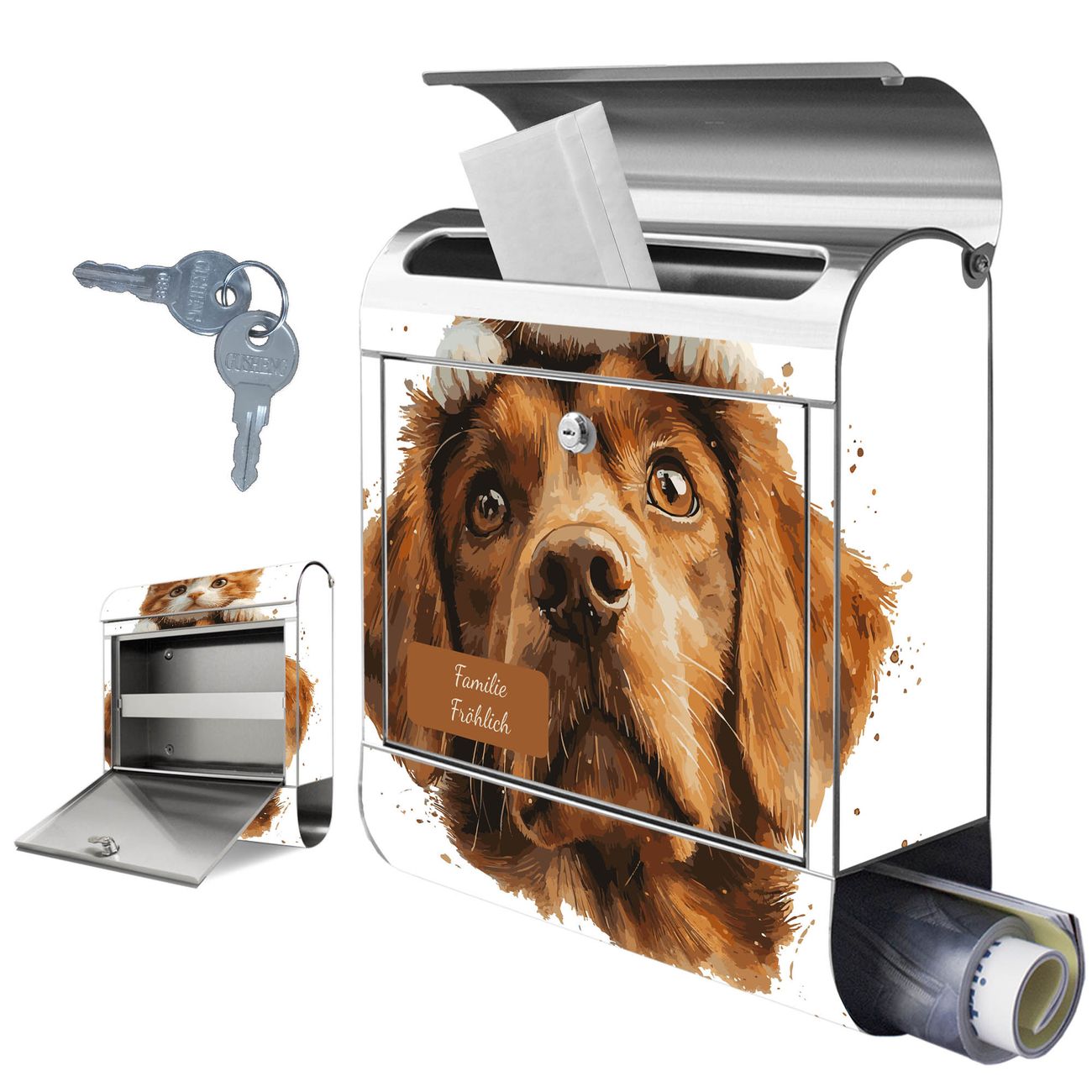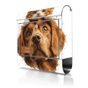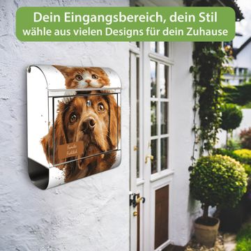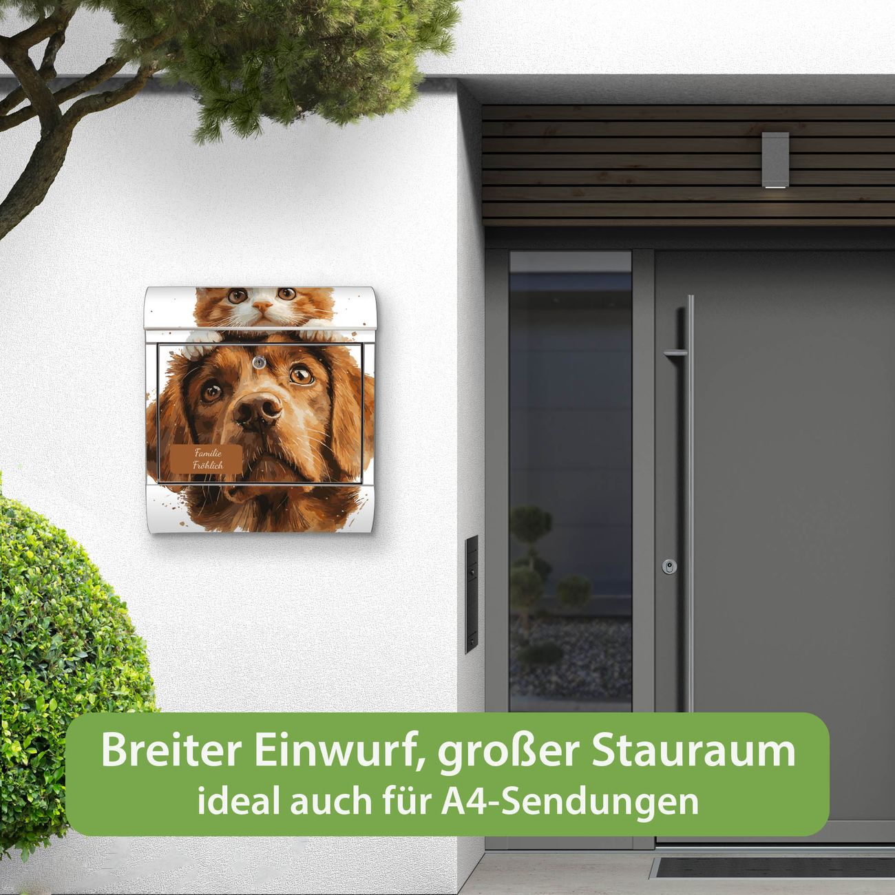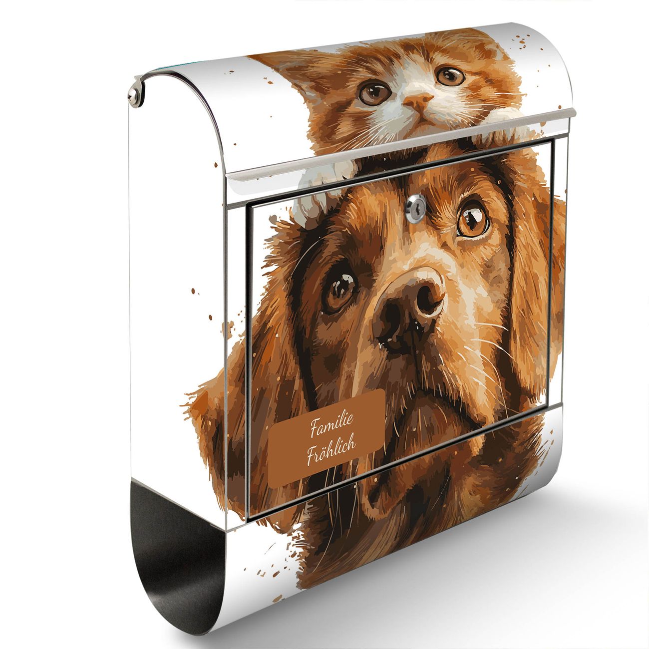 Wandbriefkasten Edelstahl Motiv Katzen- und Hundefreunde