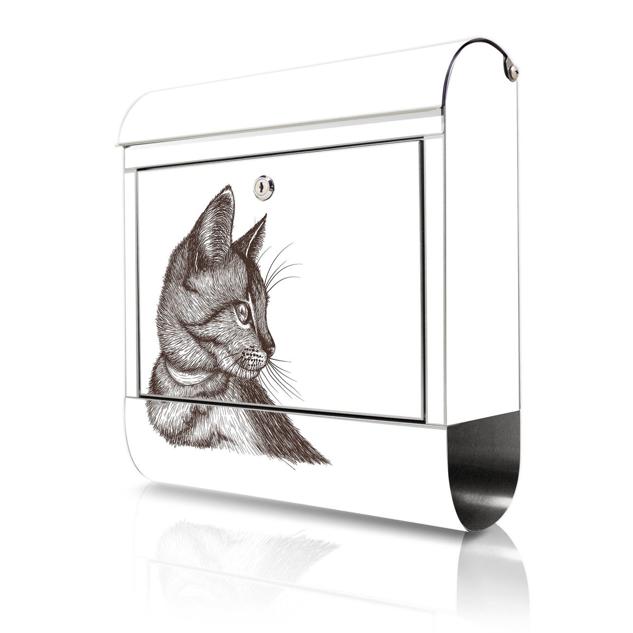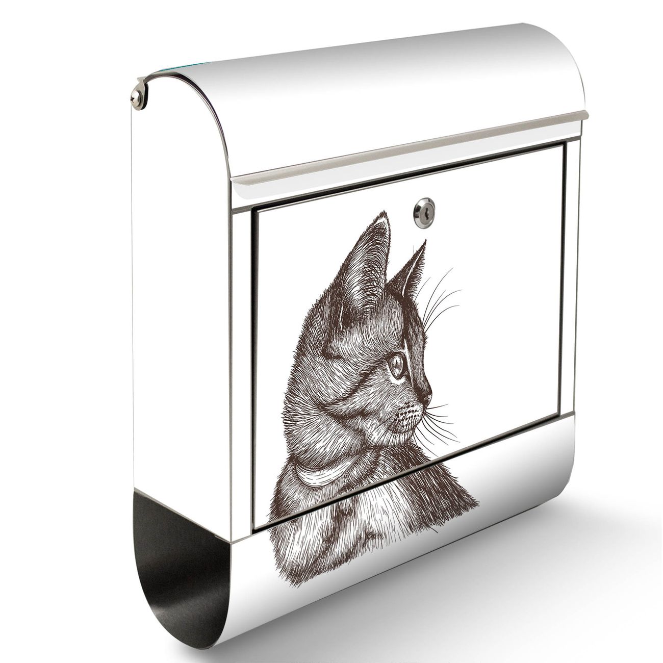 Wandbriefkasten Edelstahl Motiv Katzenillustration
