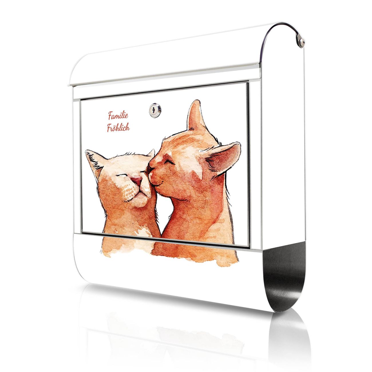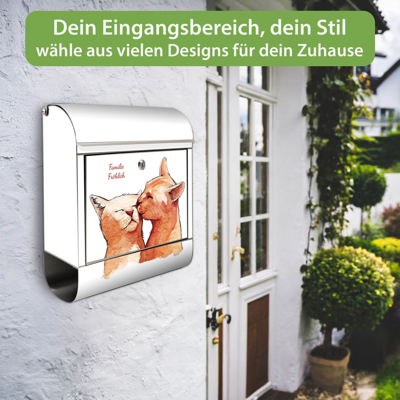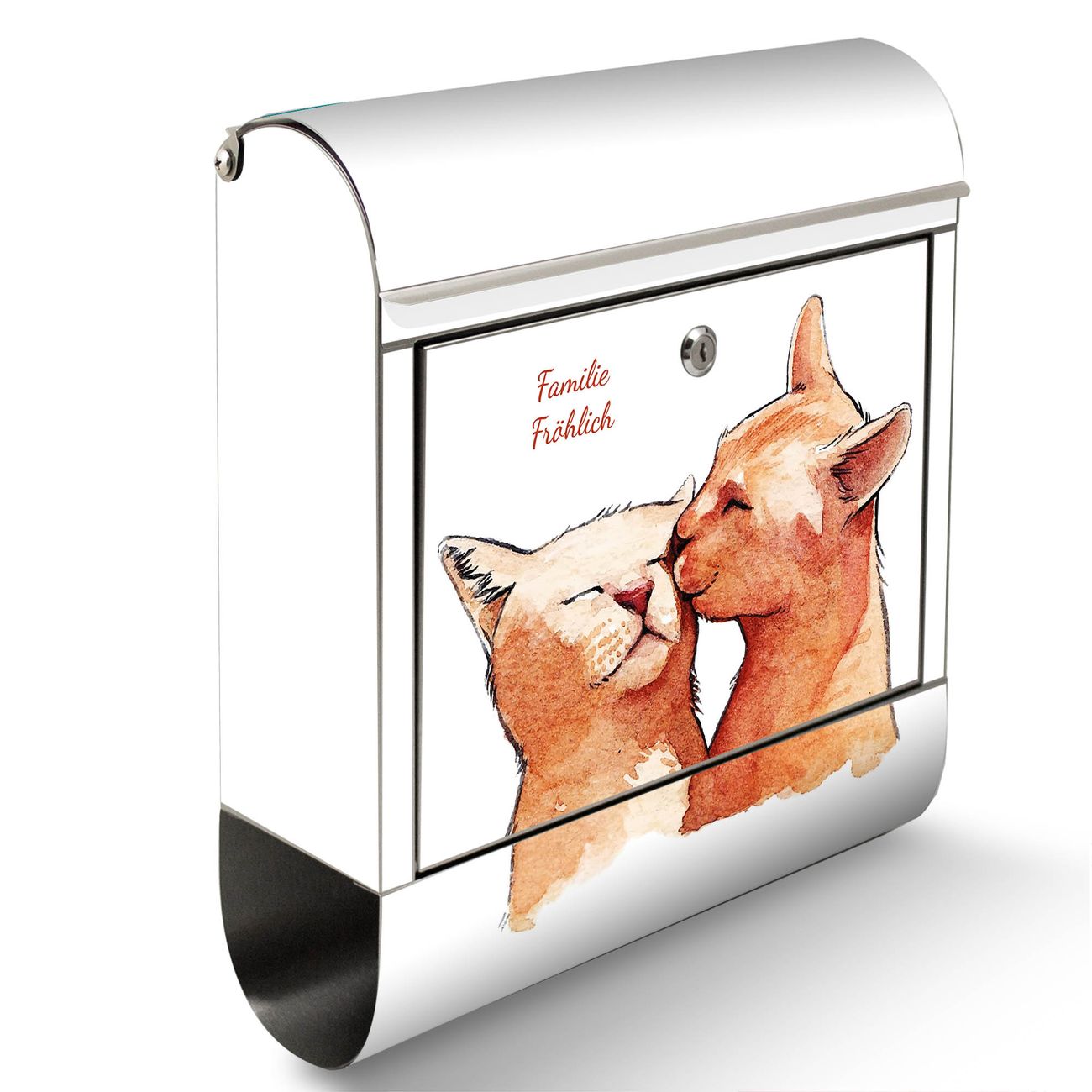 Wandbriefkasten Edelstahl Motiv Katzenkuss