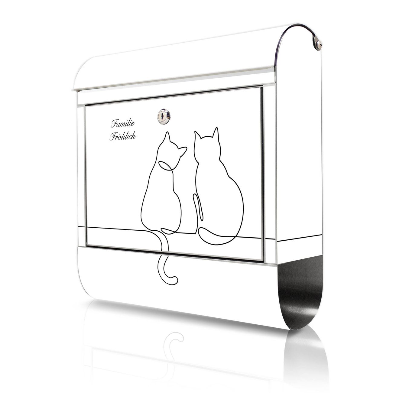 Wandbriefkasten Edelstahl Motiv Katzenliebe 2