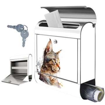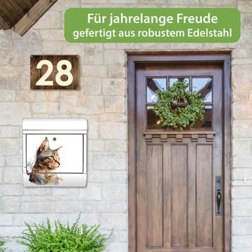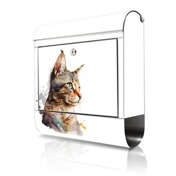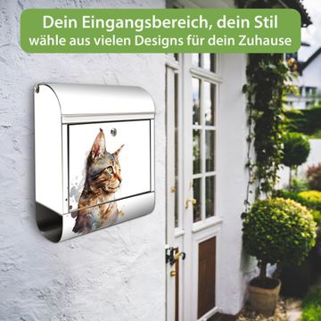 Wandbriefkasten Edelstahl Motiv Katzenportrait in Aquarell 2