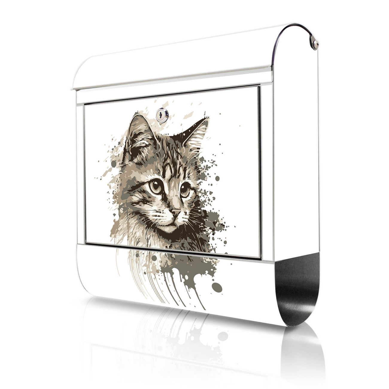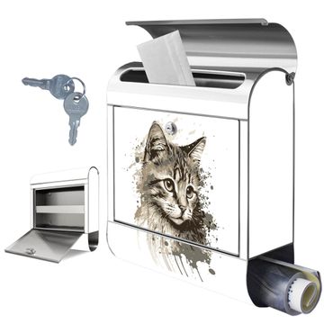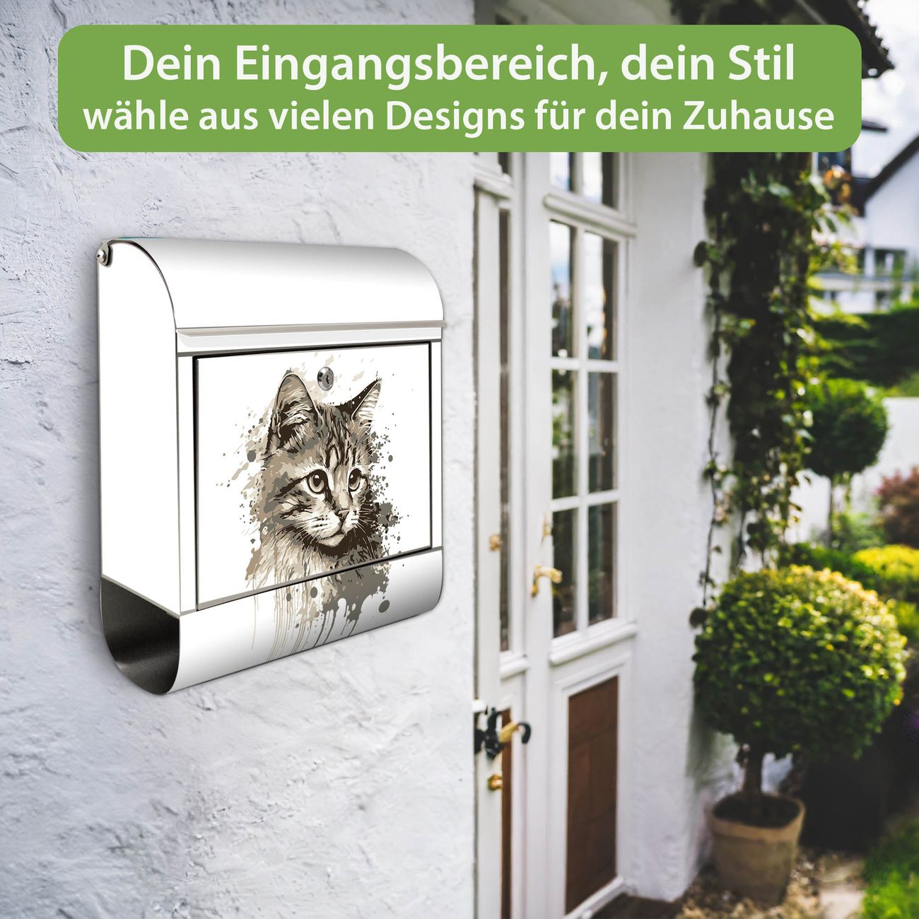 Wandbriefkasten Edelstahl Motiv Katzenportrait in Aquarell 3
