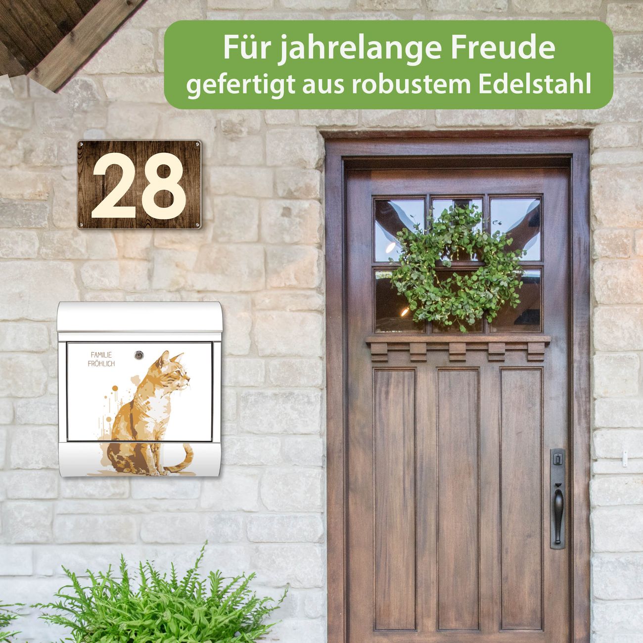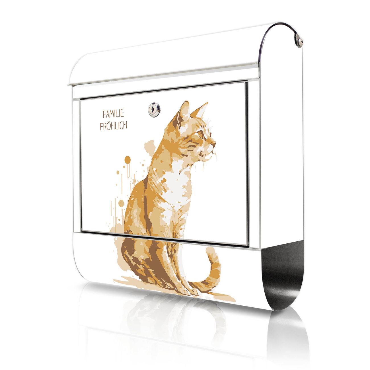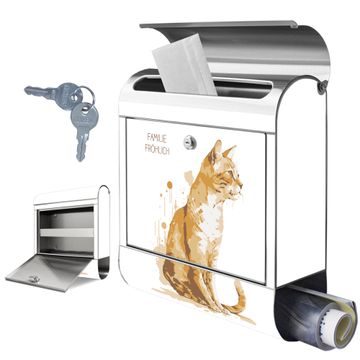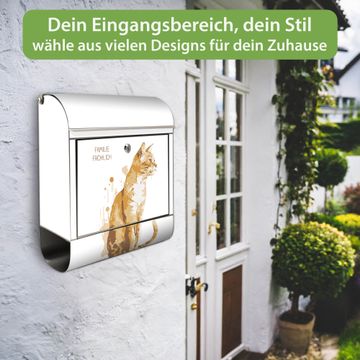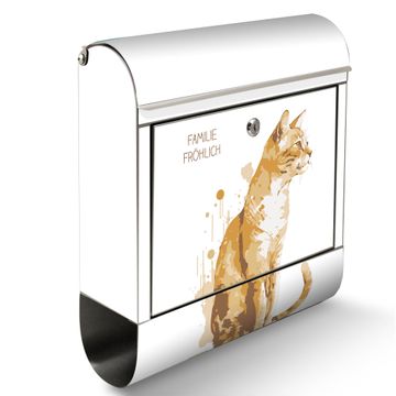 Wandbriefkasten Edelstahl Motiv Katzenportrait in Aquarell 5