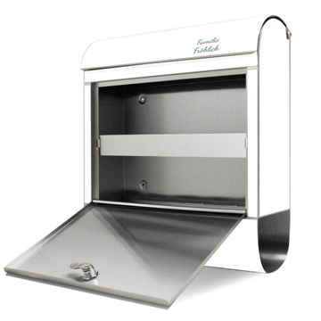 FUNKTION: Der banjado Edelstahl Briefkasten mit Motiv Motiv Kolibri 6 bietet Ihnen mit seinem Fassungsvermögen genügend Platz auch für große A4 Sendungen. Das integrierte Zeitungsfach eignet sich hervorragend um unkompliziert die Tageszeitung zu fassen. Auf Wunsch können Sie bei uns den passenden Ständer kaufen und so aus dem Wandbriefkasten einen Standbriefkasten machen. DESIGN: Der Motivbriefkasten hat ein sehr ansprechendes und ausgefallenes Design, damit entlocken Sie Ihren Nachbarn und dem Postboten ein Lächeln. Heben Sie Sich ab von der tristen grauen Masse ohne auf Funktionalität zu verzichten. DETAILS: Der Design Briefkasten mit Motiv Motiv Kolibri 6 besteht aus hochwertigem 18/0 Edelstahl. Das Motiv besteht aus einer wetter- und UV-resistenten Folie, die mit einem Schutzlaminat überzogen ist. Der Briefkasten wird mit Montagematerial und zwei Schlüsseln geliefert. NUTZEN: Sie können diesen Briefkasten sowohl als Wandbriefkasten montieren oder einen passenden Ständer auswählen und als Standbriefkasten einbetonieren. Die Größe bietet genügend Platz für Sendungen aller Art, das hochwertige Edelstahl ist rostfrei und die Motivfolie absolut wetterfest. SCHUTZ: Um Ihre Post optimal vor Witterungseinflüssen wie Starkregen zu schützen, empfehlen wir, den Briefkasten geschützt anzubringen. BANJADO: Ihr Briefkasten wird in Sachsen in einer kleinen Manufaktur von Hand veredelt. Die Motivfolie ist lösungsmittelfrei und schutzlaminiert, dies sorgt für einen langen Halt. Wir legen großen Wert auf die Verbindung von Funktionalität und Design. Sie erhalten Handarbeit aus Sachsen.