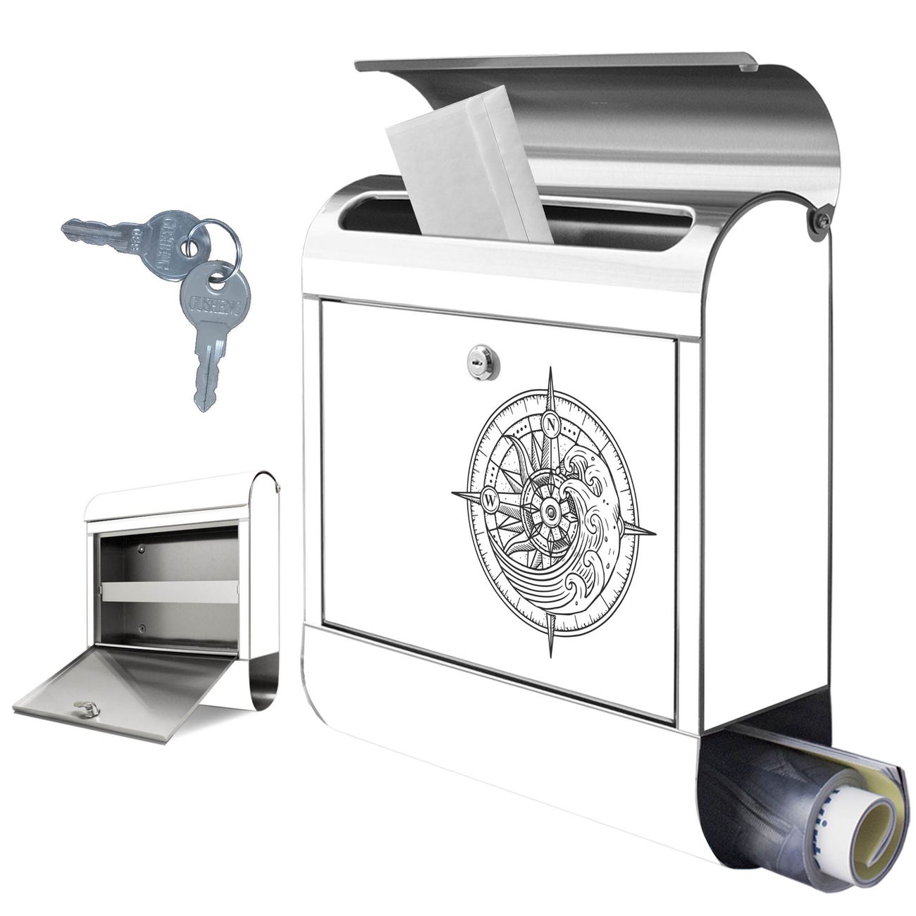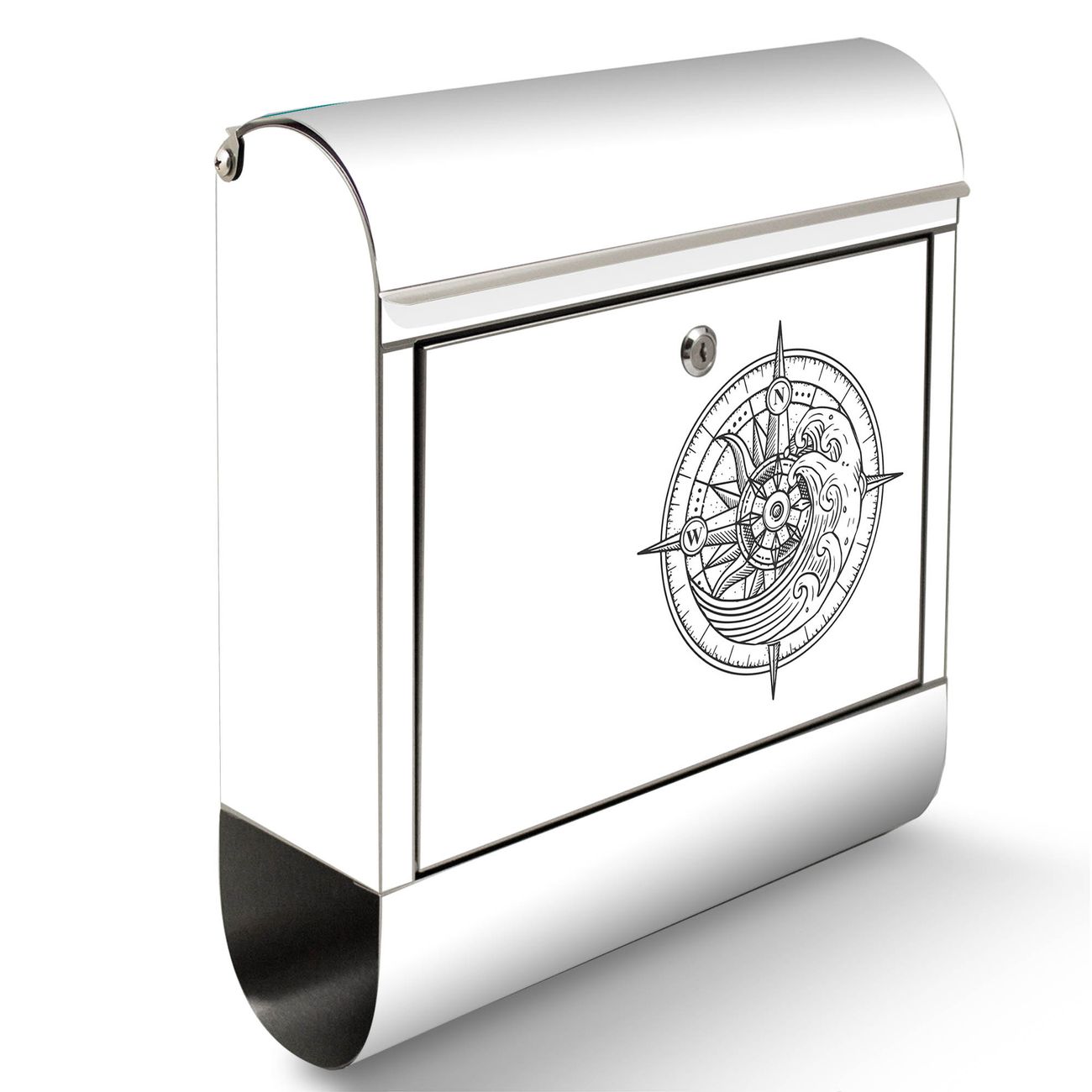 Wandbriefkasten Edelstahl Motiv Kompass 2