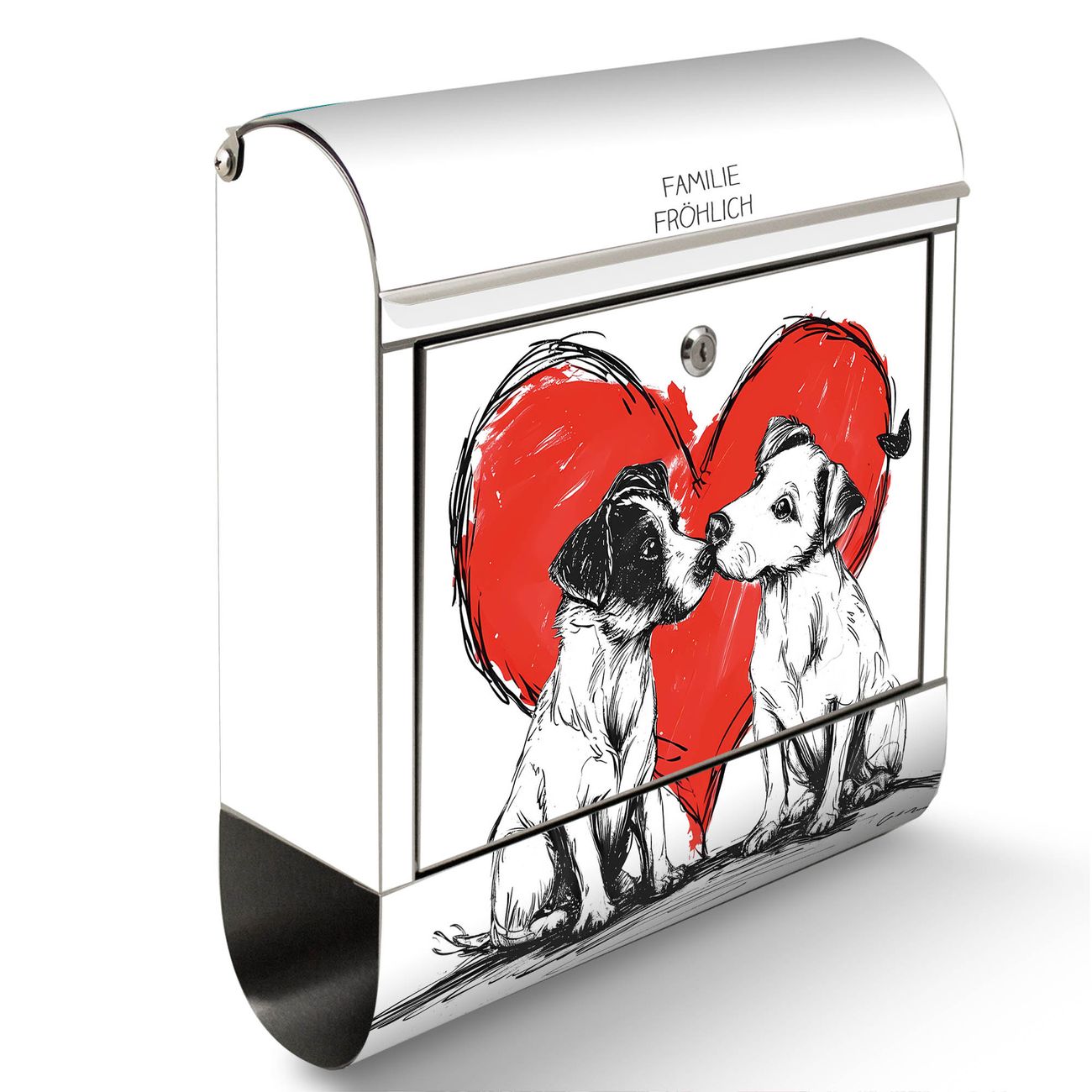 Wandbriefkasten Edelstahl Motiv Liebende Hunde