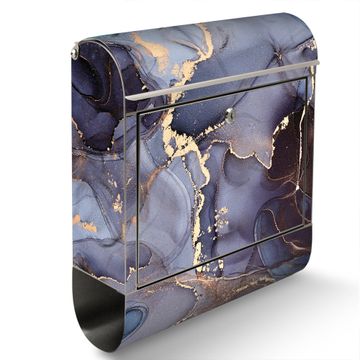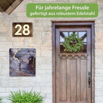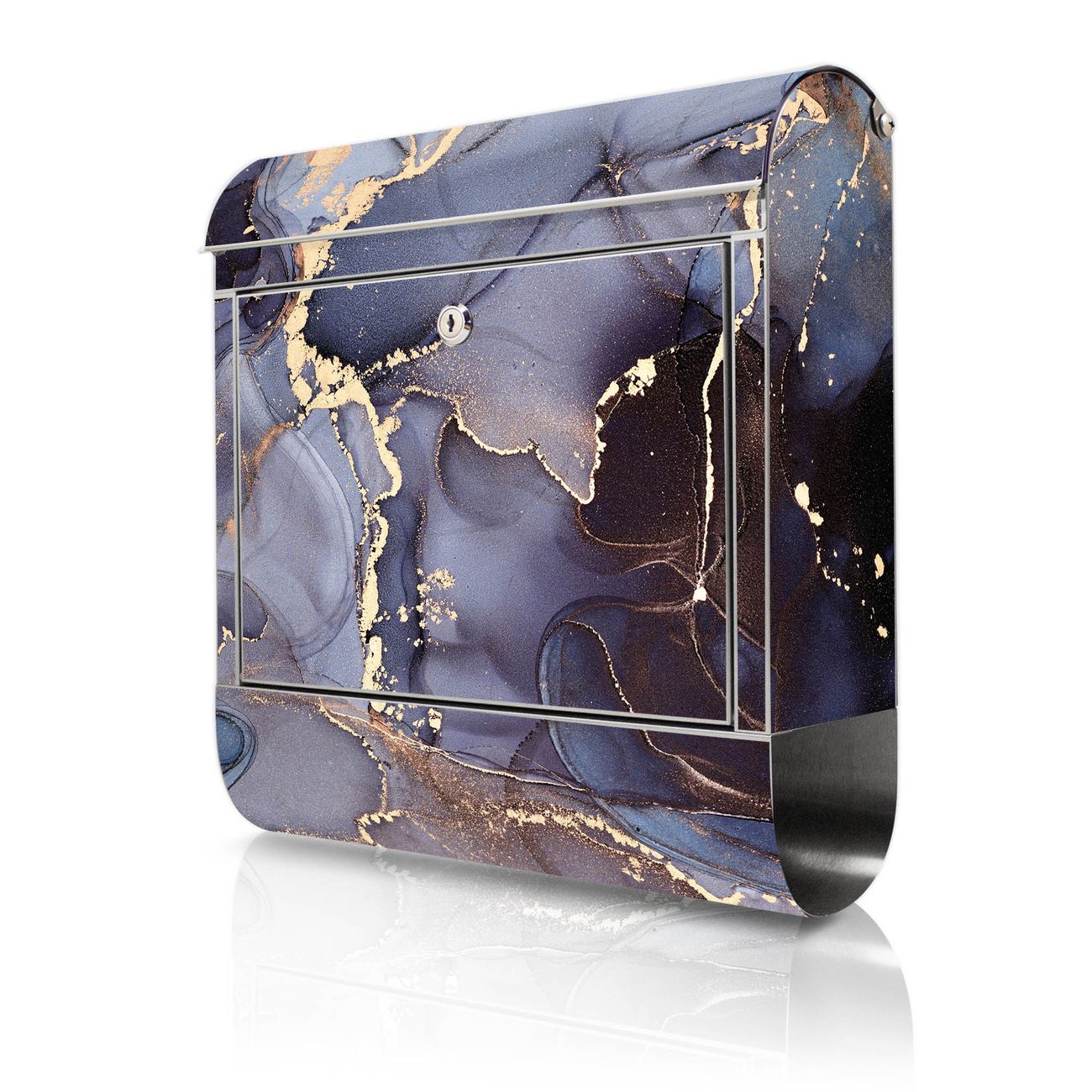 Wandbriefkasten Edelstahl Motiv Lila Marmor mit Gold 1